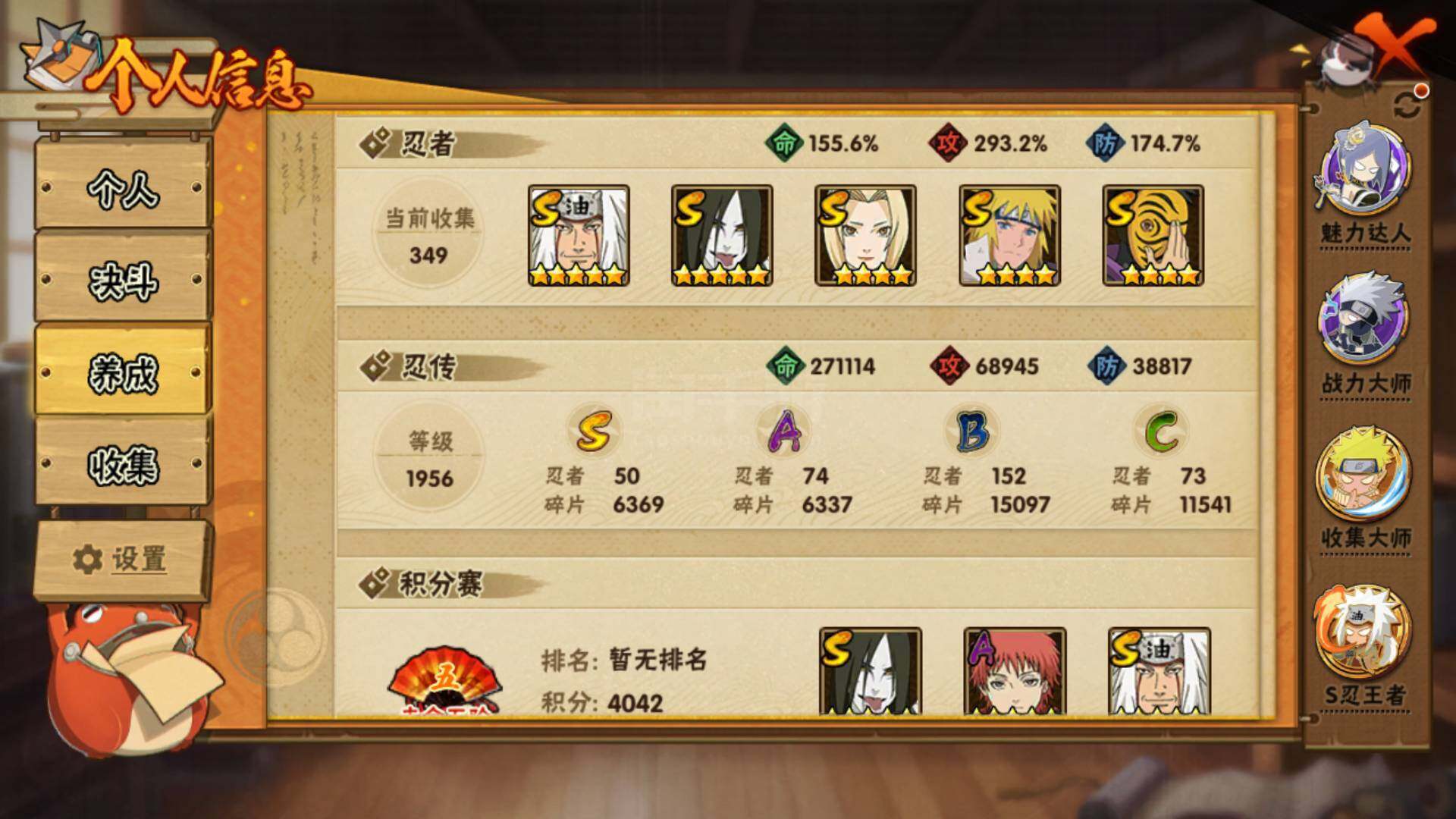 V14/2400W战力/总忍者349/50S/准51S/74A/S差大野木和烈