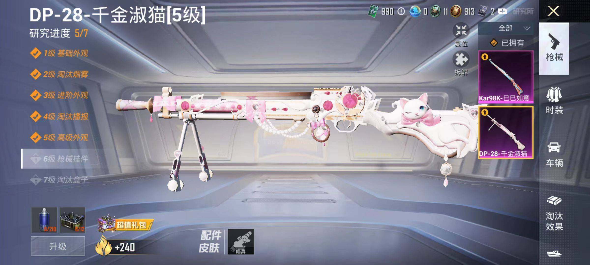 【特效枪等级】:Kar98K-巳巳如意(五级),DP-28-千金淑猫(五级)