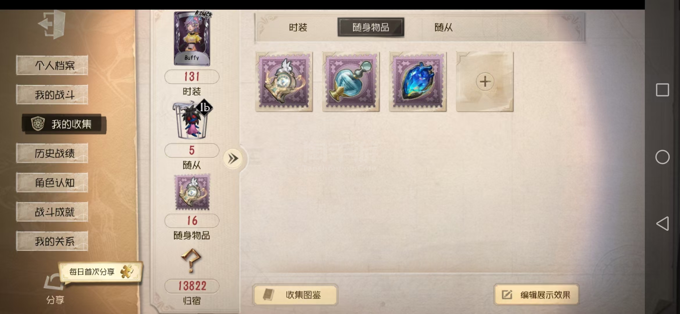 随身物品数量: