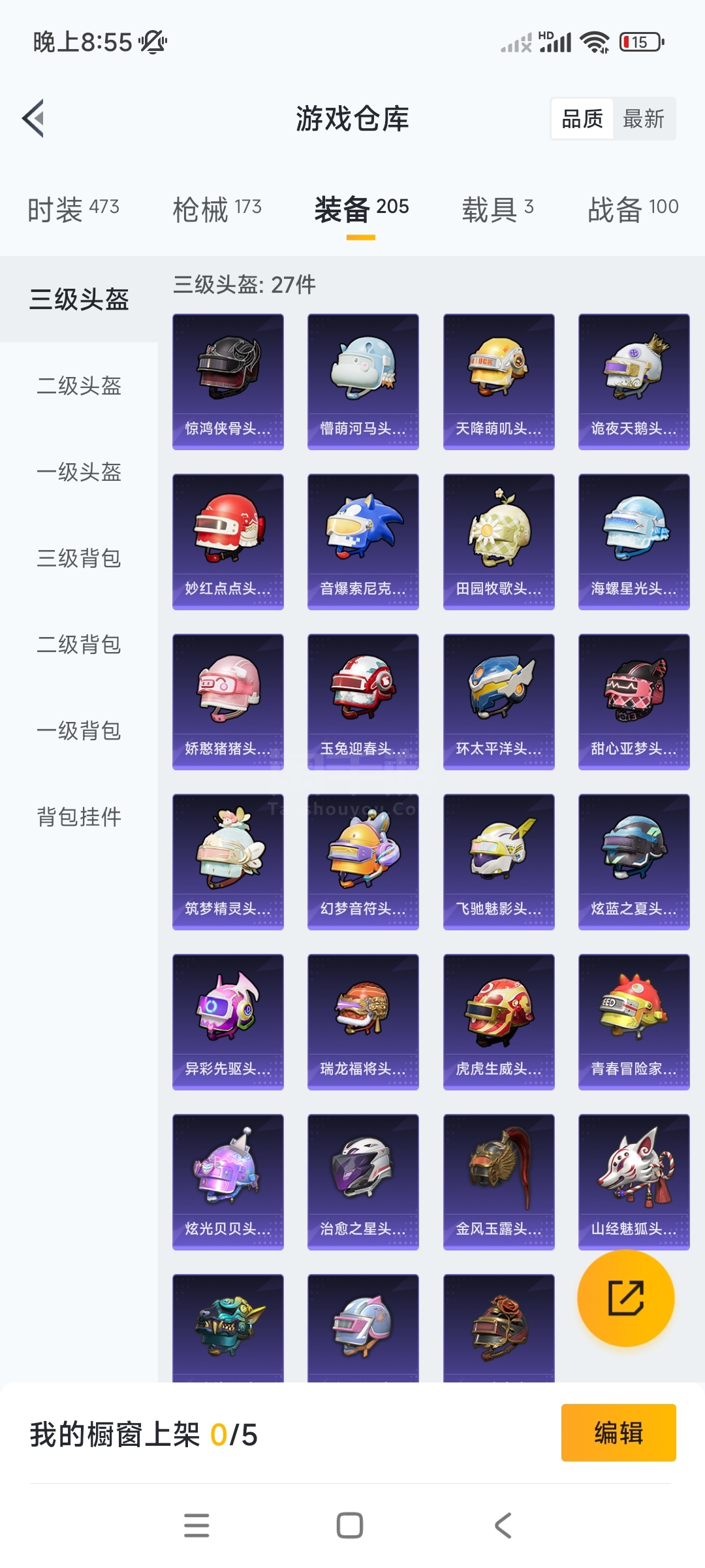3载具 3升级枪 2粉装 1飞行器 173枪皮 122套装 54986热力 7印记 星钻