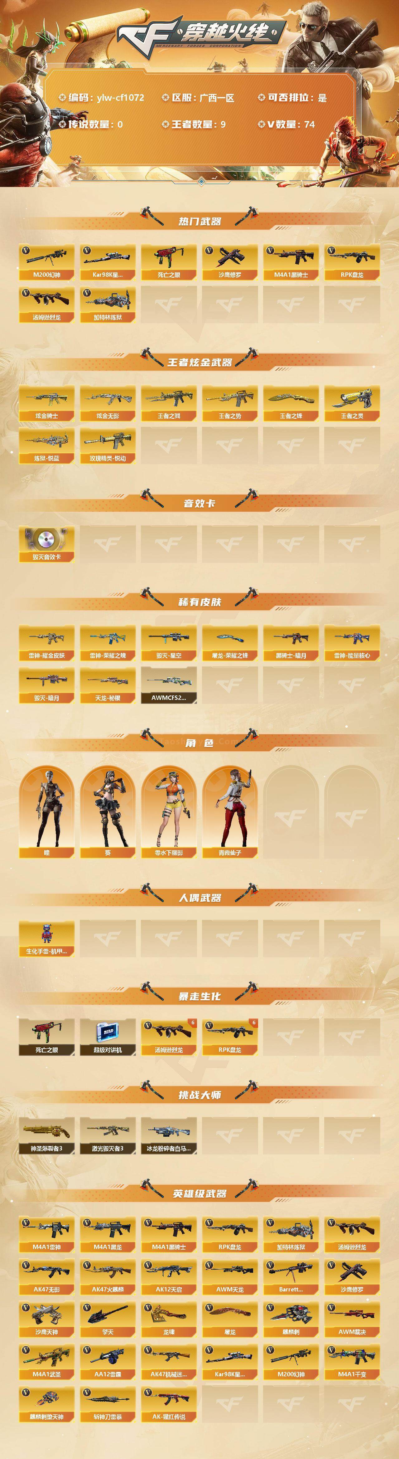 穿越火线(CF)【端游】【商品标题】:广西一区-74V-9王者-2炫金
