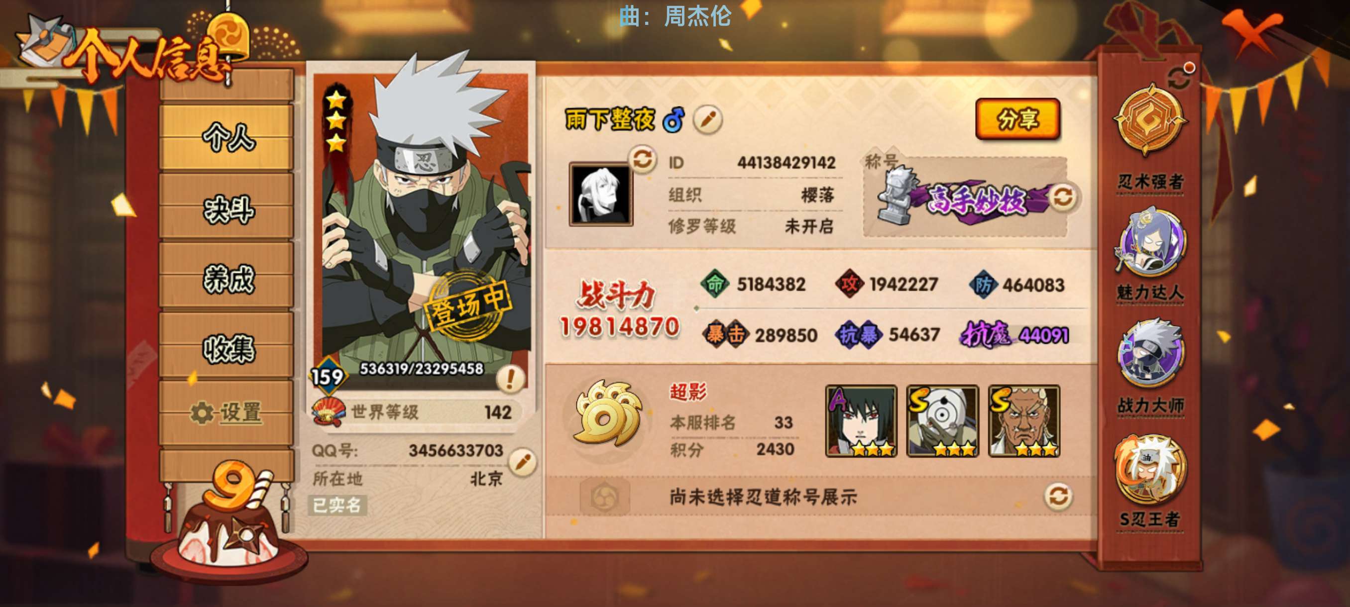 安卓QQ,准2000万准全高招sa自来也马上出,大蛇丸五星能加七八十万战力王者贵八韩信李白典藏凤求凰