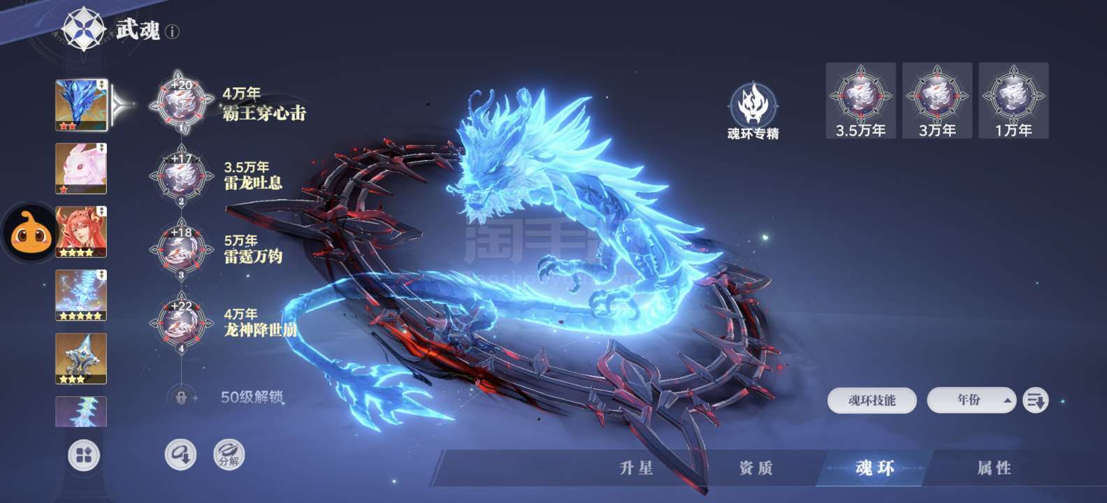 斗罗大陆:猎魂世界【安卓官方】35万战红二星蓝龙账号账号等级48级 战力35万+ 蓝龙魂骨套装完整还有120抽有荣荣