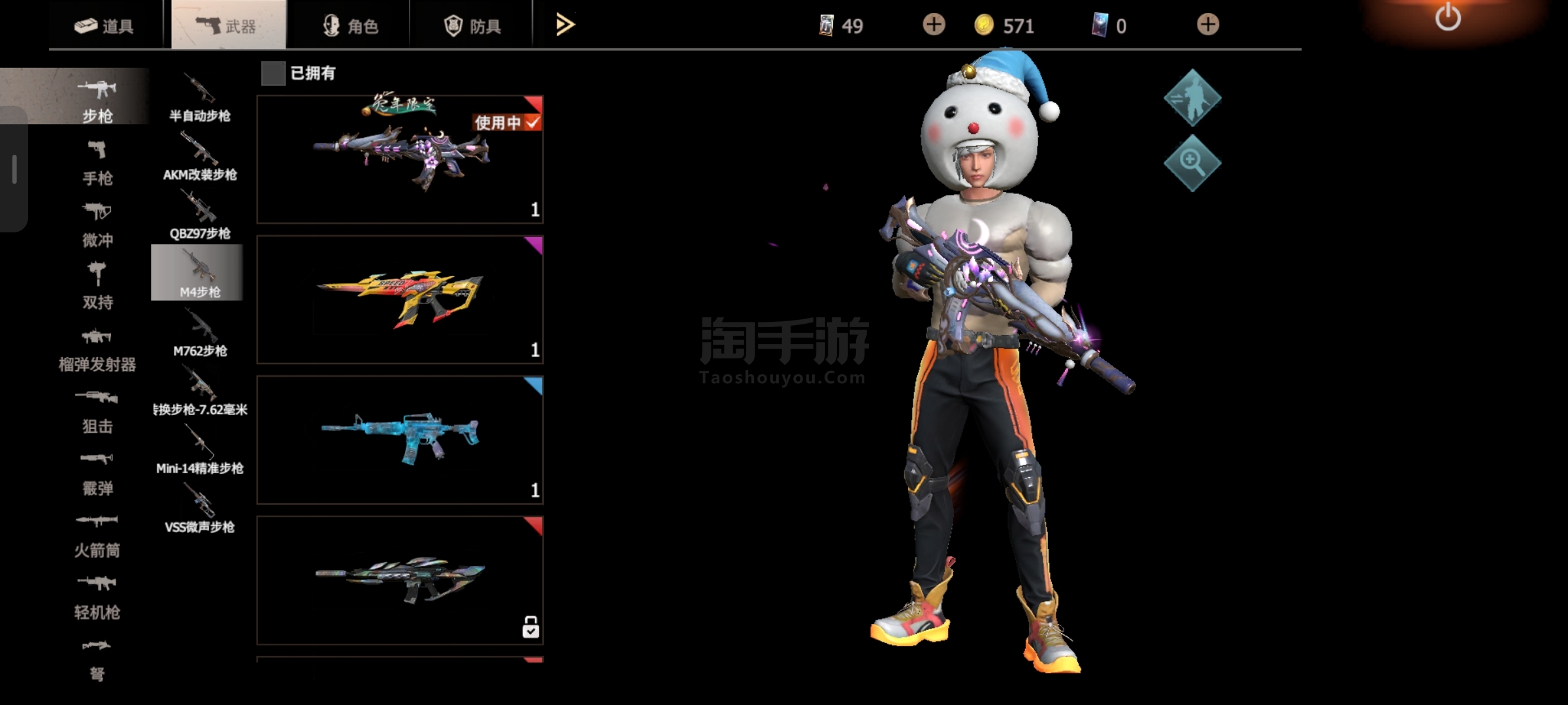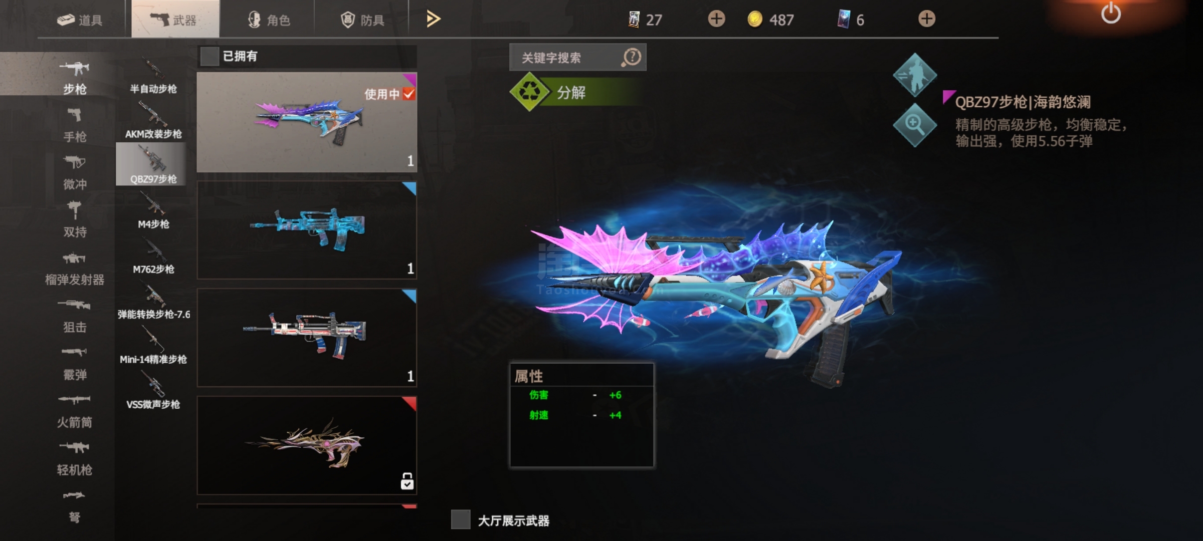 基本所有枪械都有皮肤(有普通品质紫色红色)