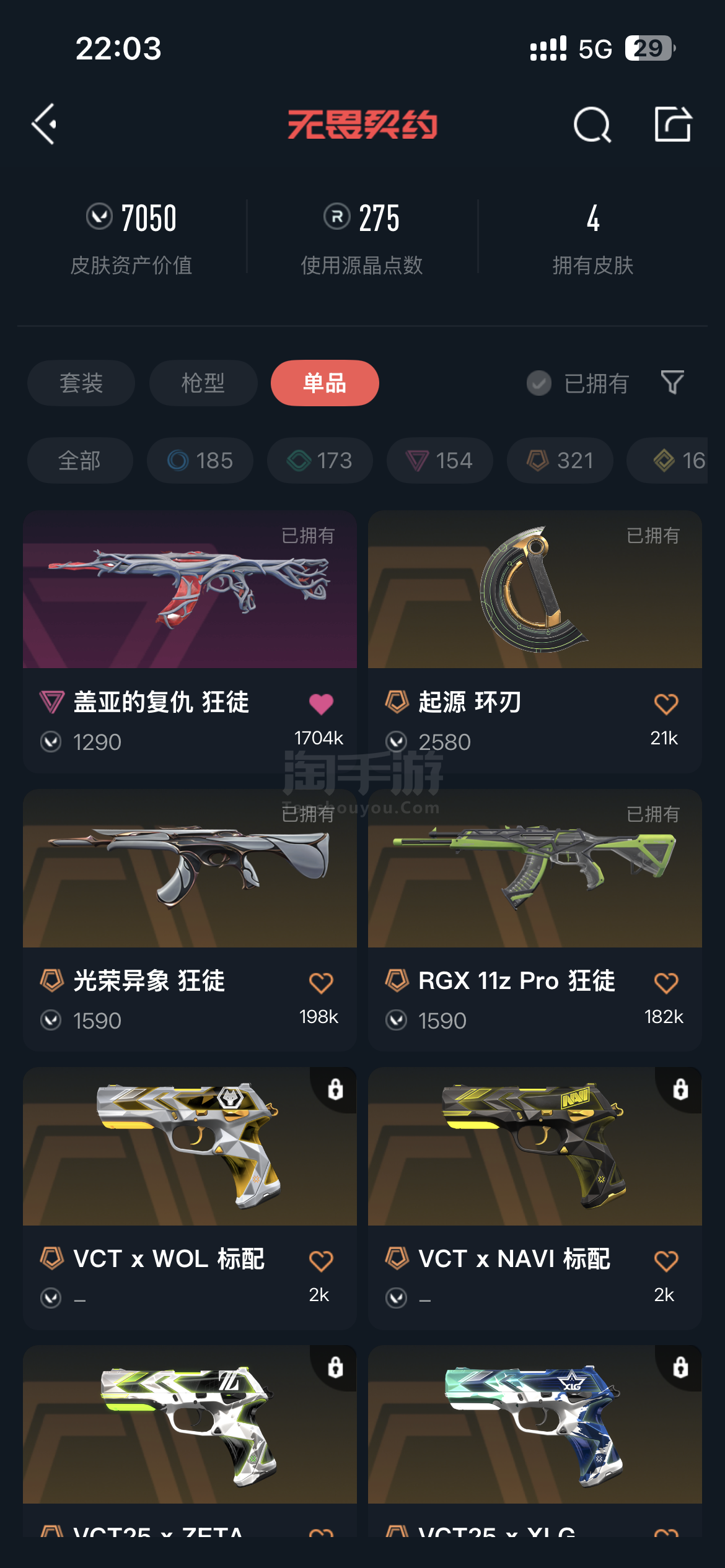无畏契约两刀三狂徒王者还有115个皮肤有截图可以找我