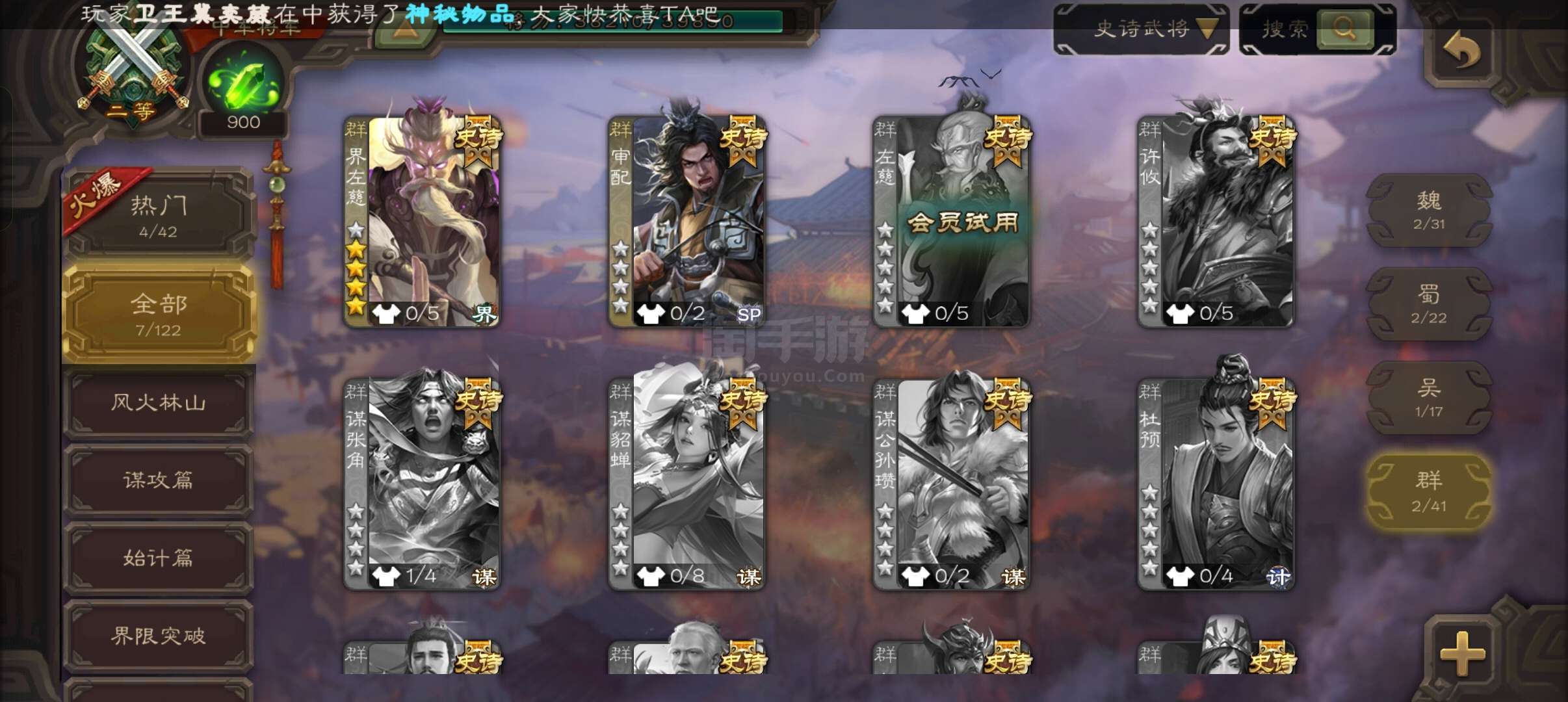 捡漏中军玉龙动戏子/金皮大宝/界左慈/谋赵云等无限点将