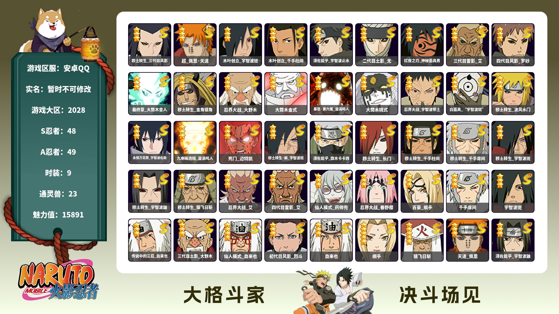 宇智波鼬(须佐能乎),神秘面具男,纲手(百豪),宇智波斑(秽土),艾(三代目),忍界带土,木叶创立斑,八门凯,大筒木金氏,神秘面具男 (红叶之刃),大筒木桃式(博人传),大筒木舍人(最终章),漩涡鸣人(暴怒·第六尾)