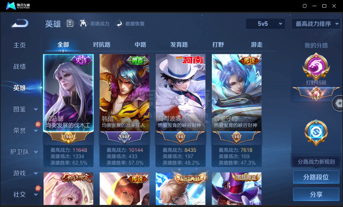 安卓Q-打野45段-万战司马懿,韩信-怪盗基德-安卓Q-可二次-贵7-123英