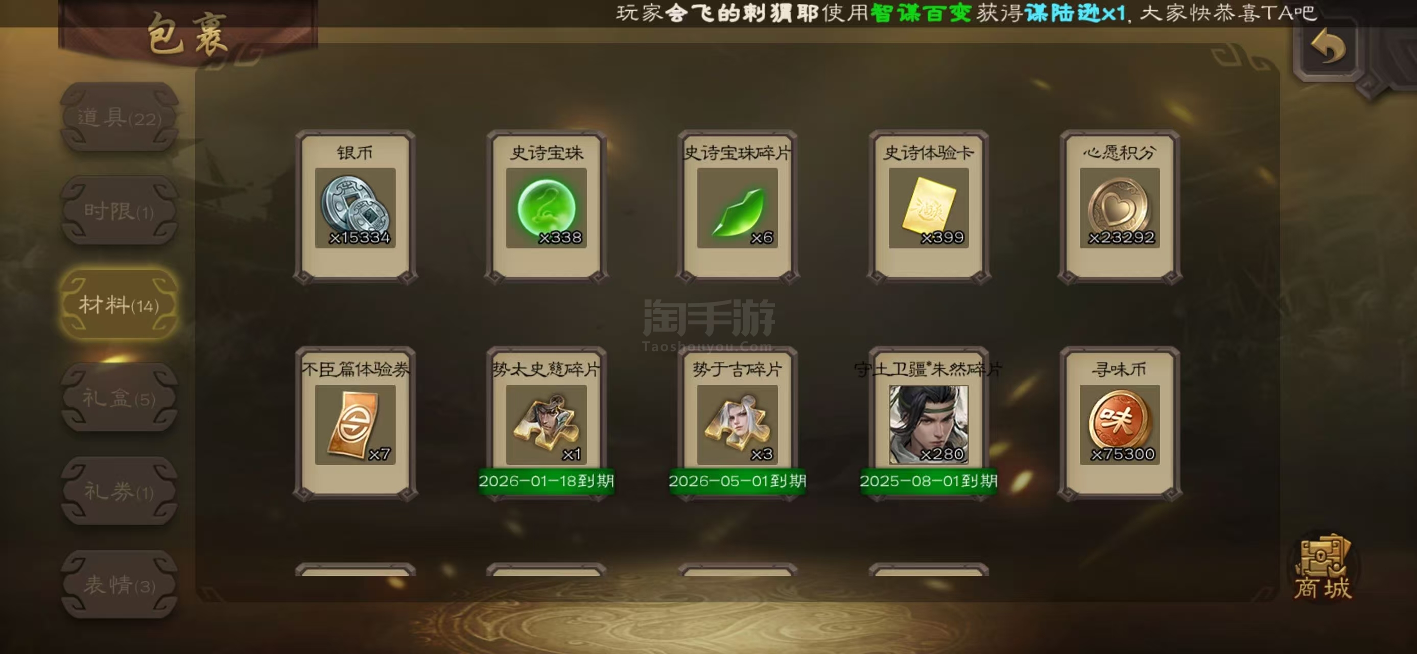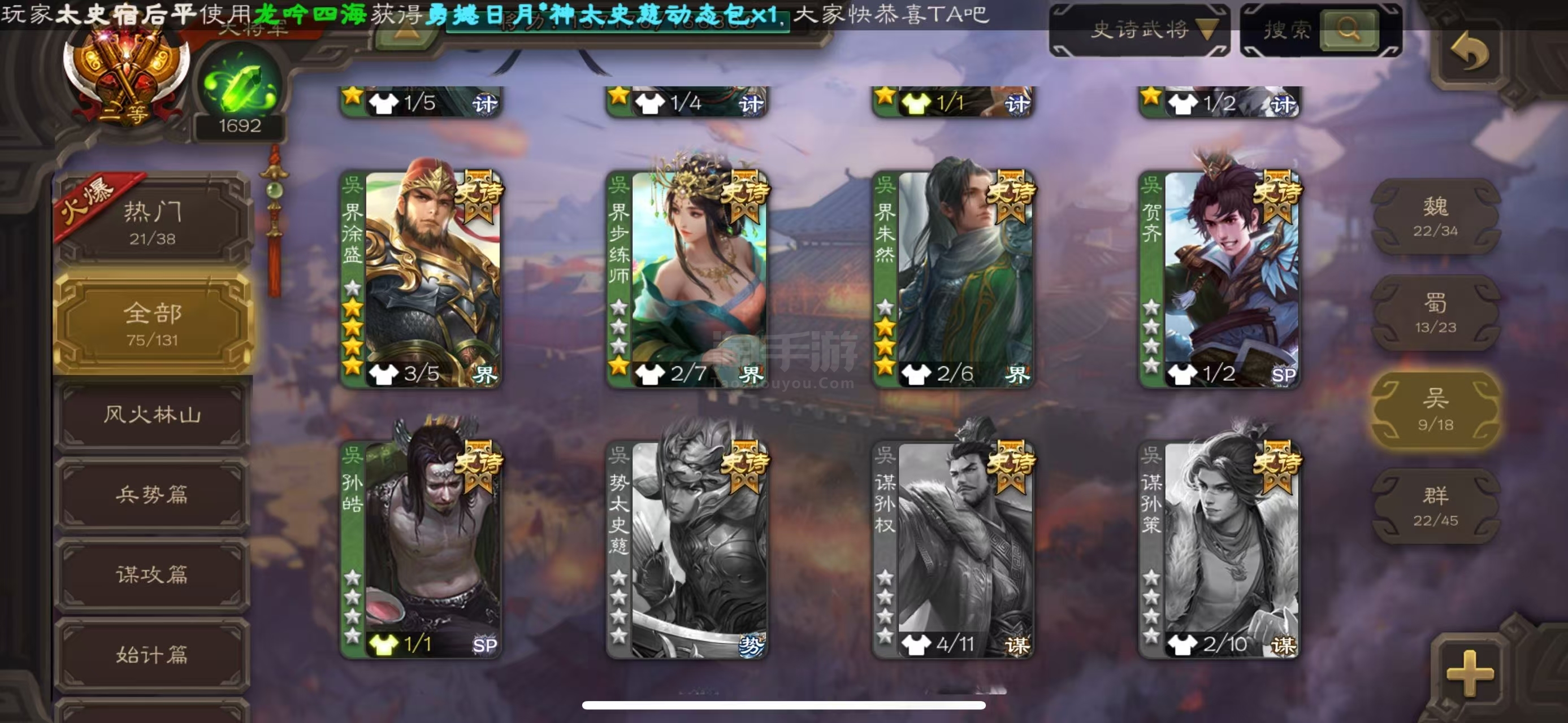 三国杀准一等大将军75SS 3卡充足+338宝珠+2W积分想玩啥就换啥