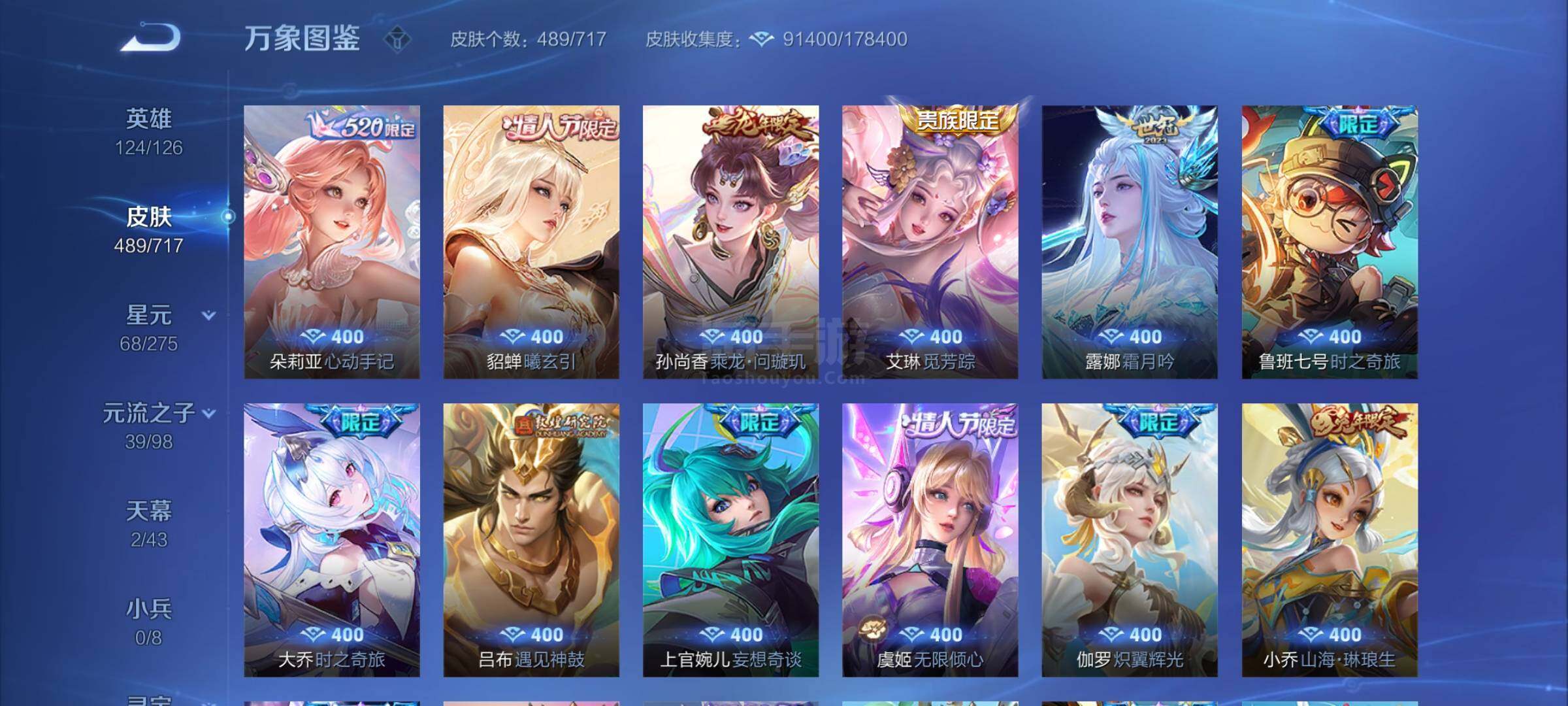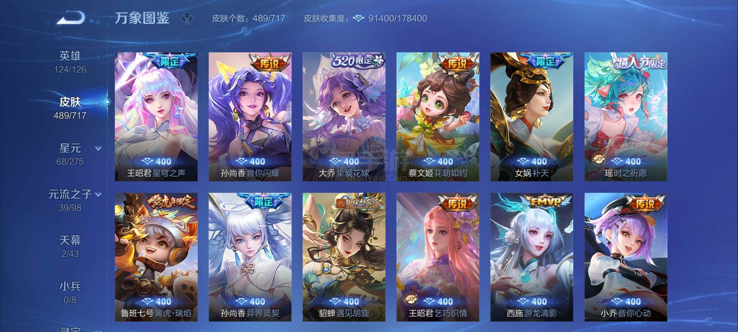【商品标题】:489皮贵族10,貂蝉穆夏珍品无双,2典藏武则天貂蝉,3无双瑶妲