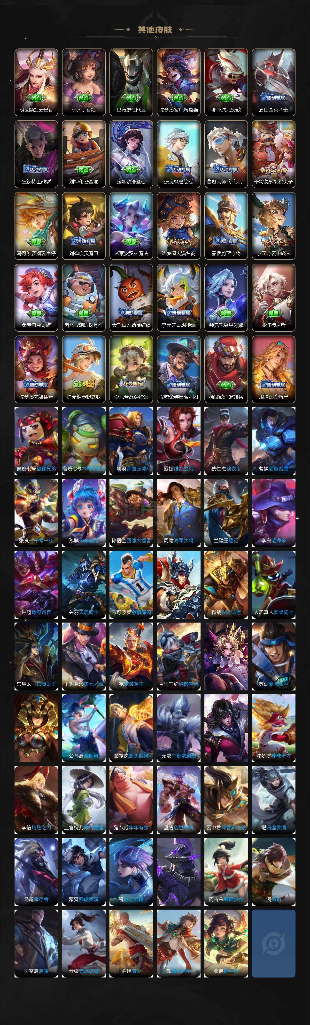【传说皮肤】:孙悟空地狱火,宫本武藏地狱之眼,梦奇胖达荣荣,