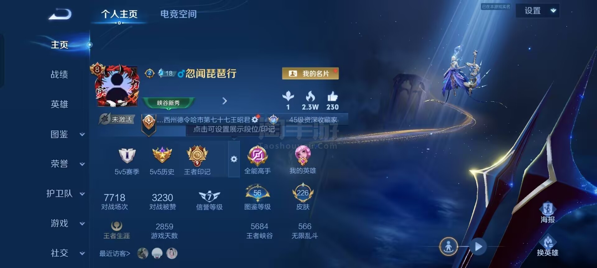 王者荣耀【安卓QQ】安卓QQ/永恒钻石/226皮肤/124英雄/1典藏/0珍品无双/0无双/2珍品传说/13传说/75史