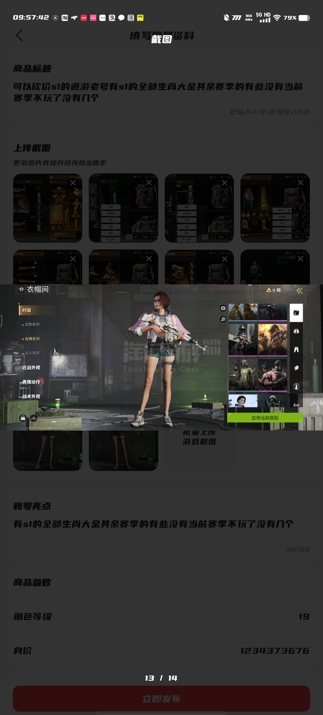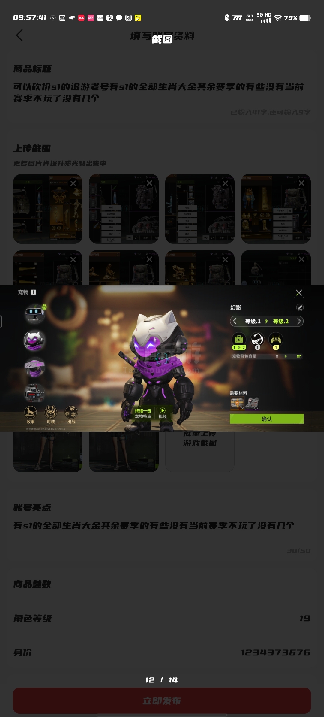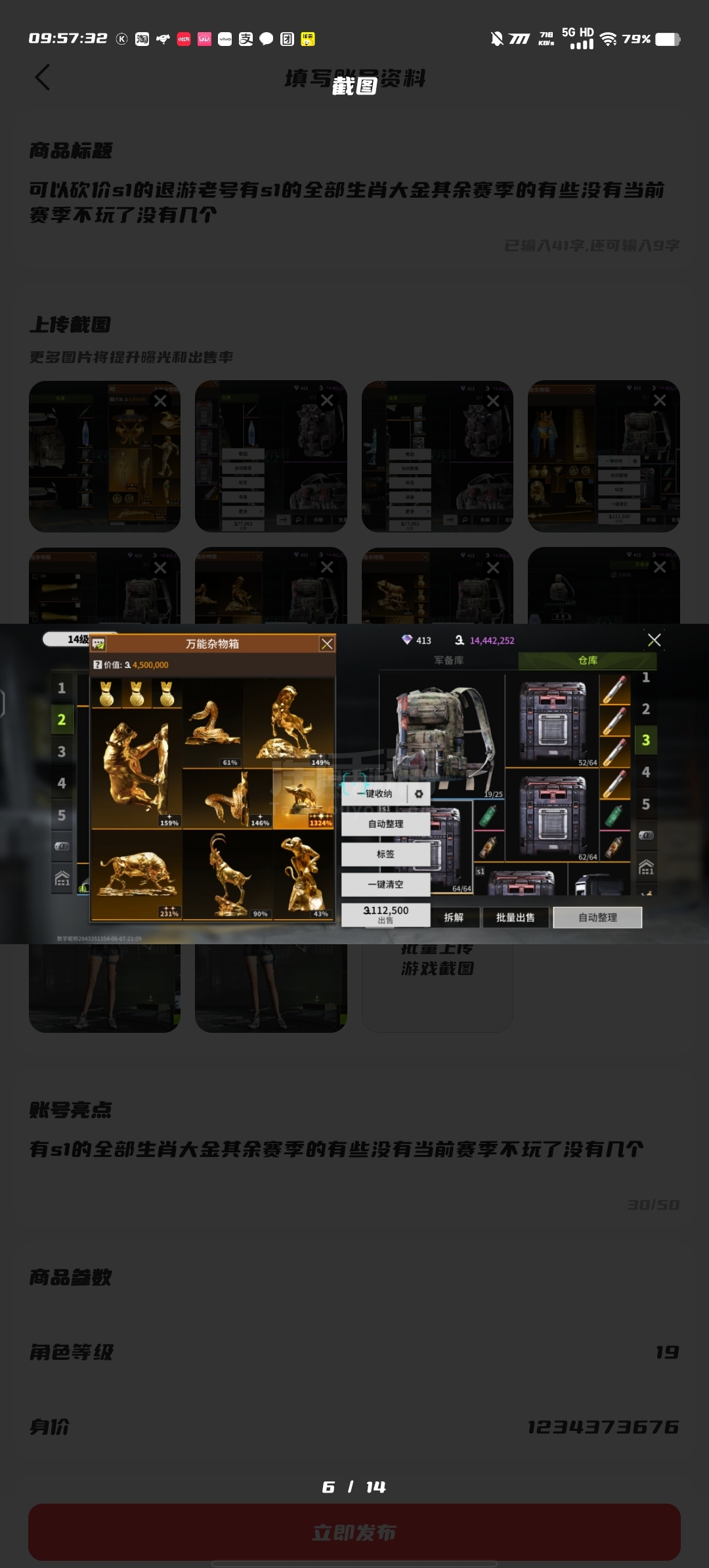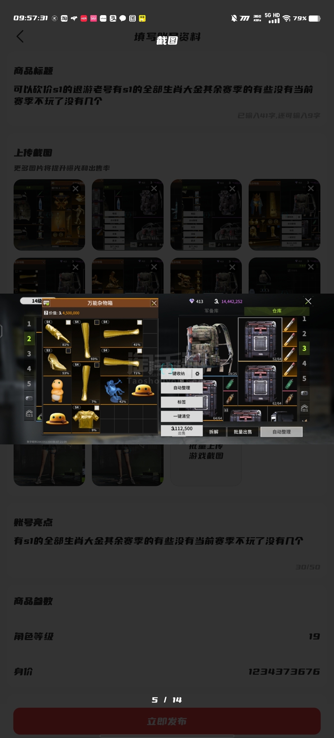 最低价二百元子可以砍价s1的退游老号有s1的全部生肖大金其余赛季的有些没有当前赛季不玩了没有几个