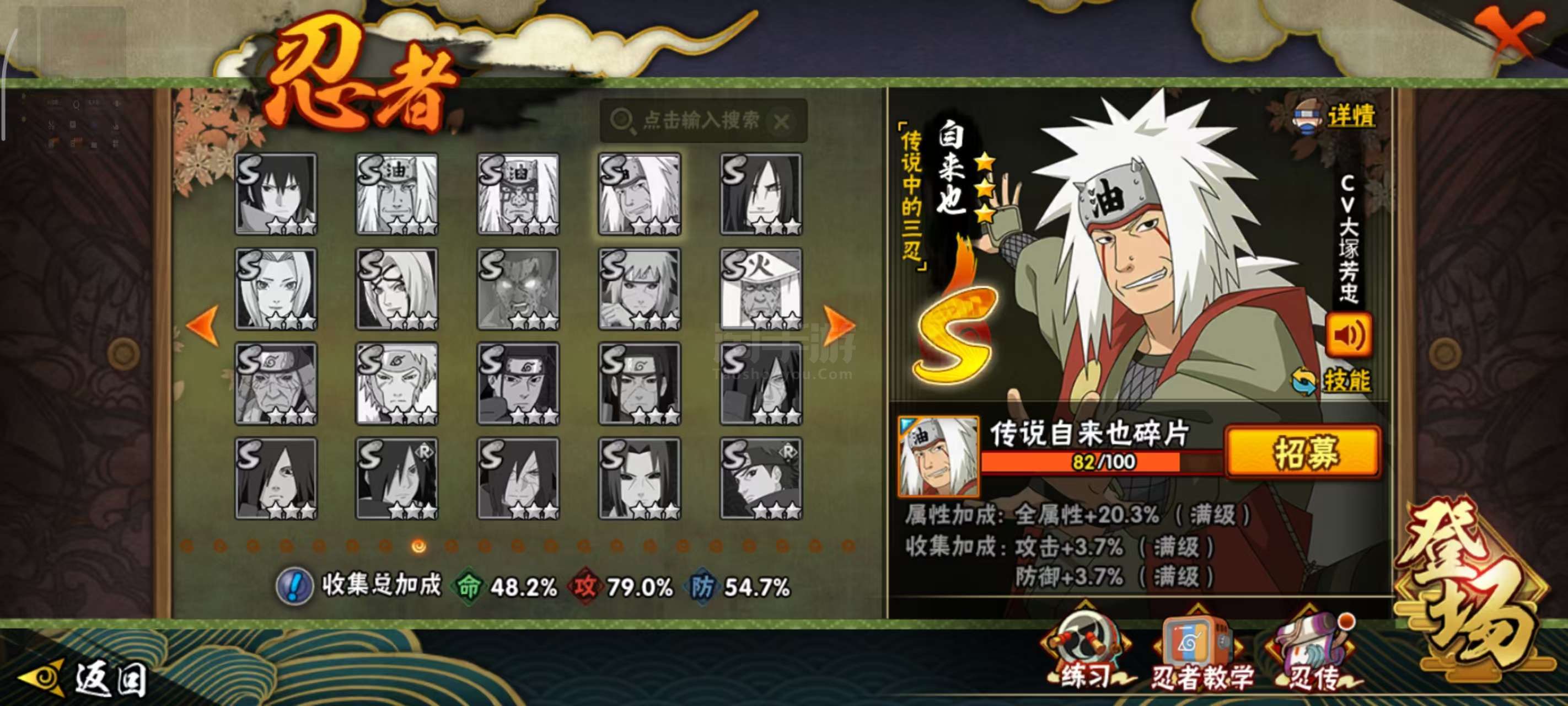 安卓QQ v10,9个S忍,五个点券忍,盾狗,新水,新南,面麻加创立柱间.传说自来也82片,紫狗35解斑29