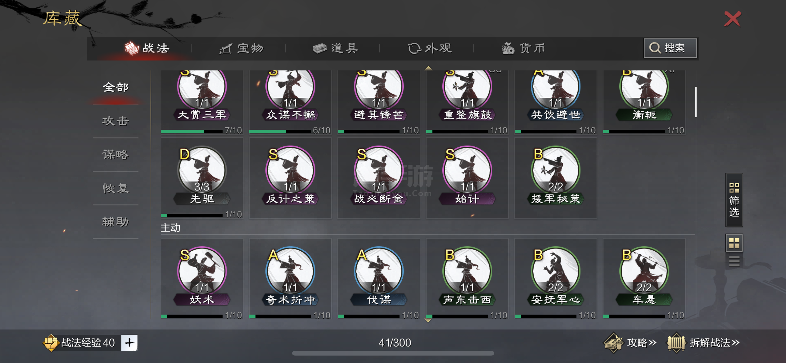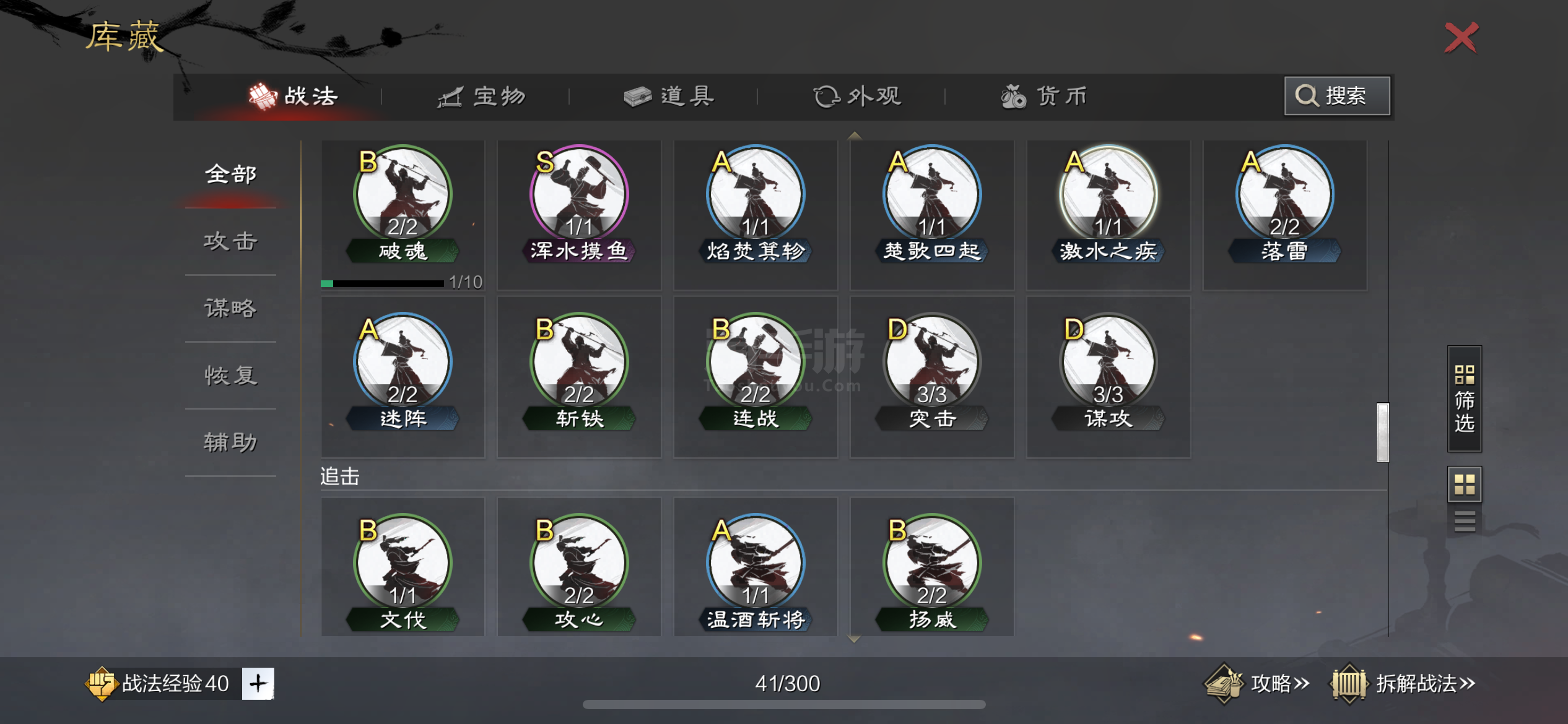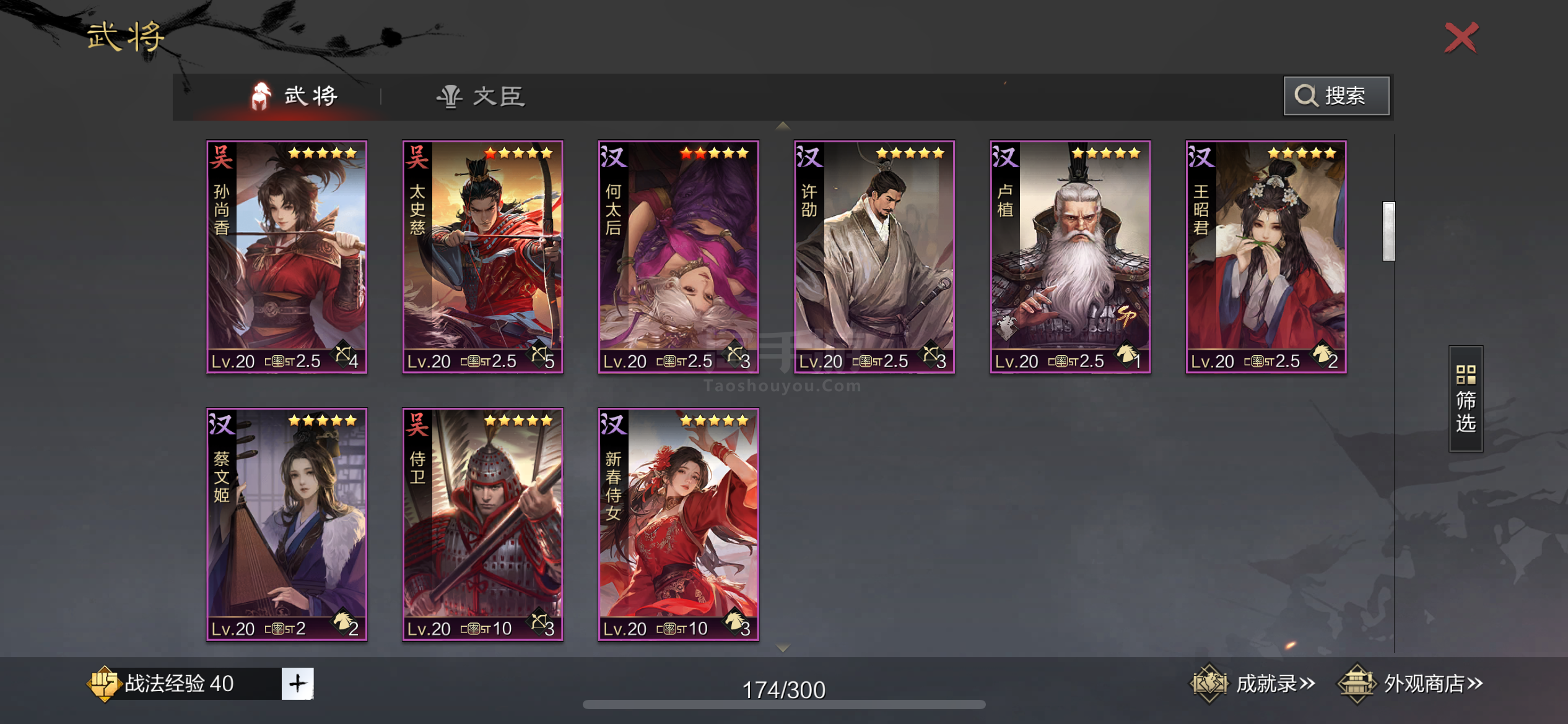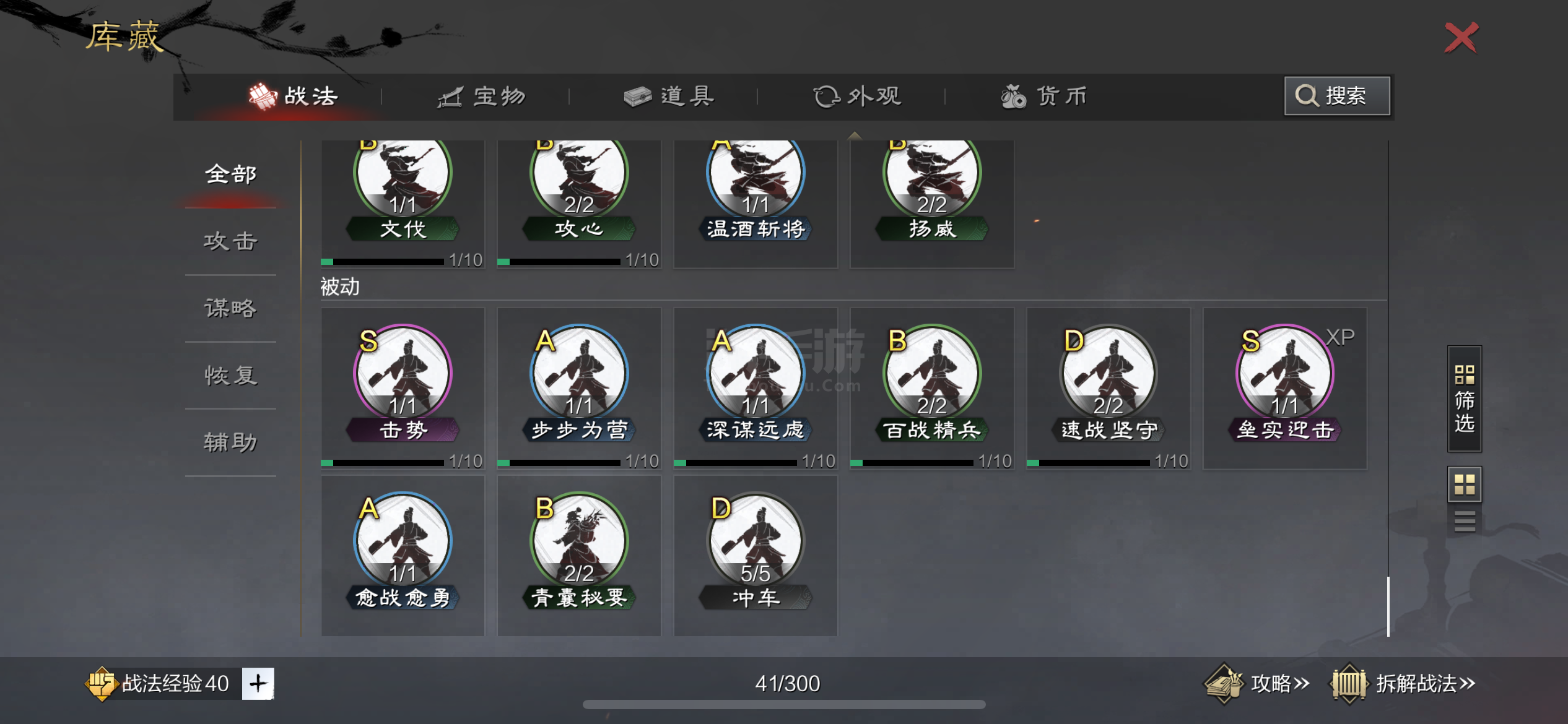 有试师,武将战法也有几个主要的,有画像框,面板也还不错。