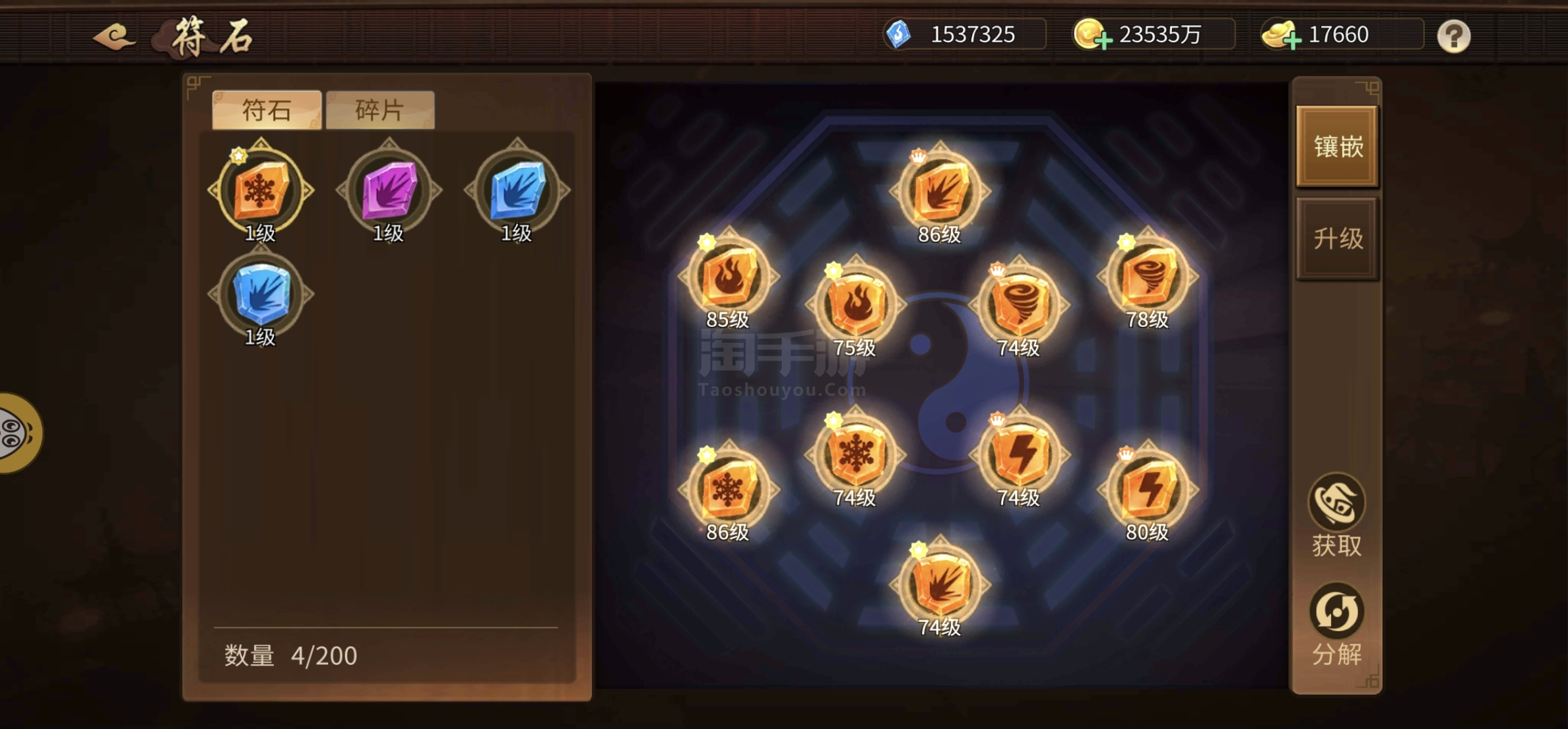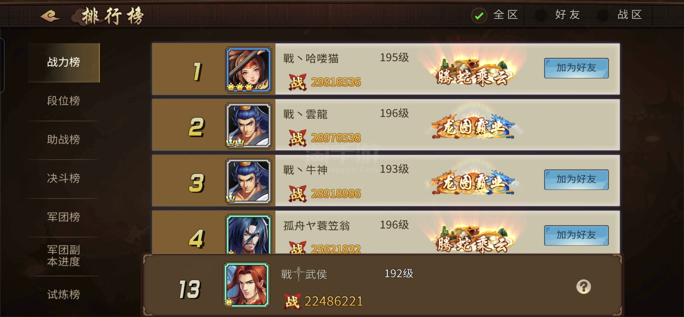 高战力,之前充值很多钱,已经转移到官方账号,后续不需要投入。援军,天书,符石都齐全