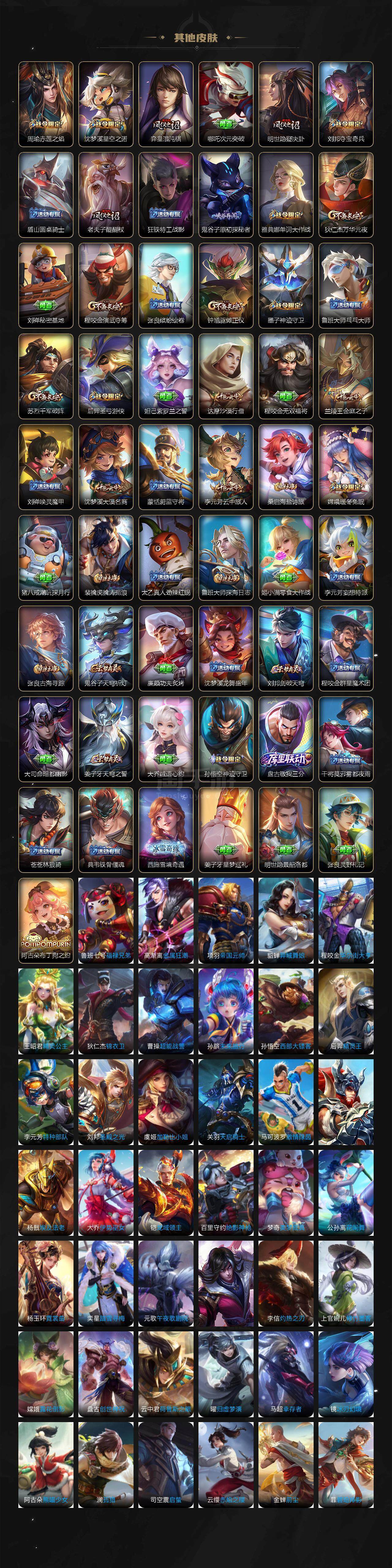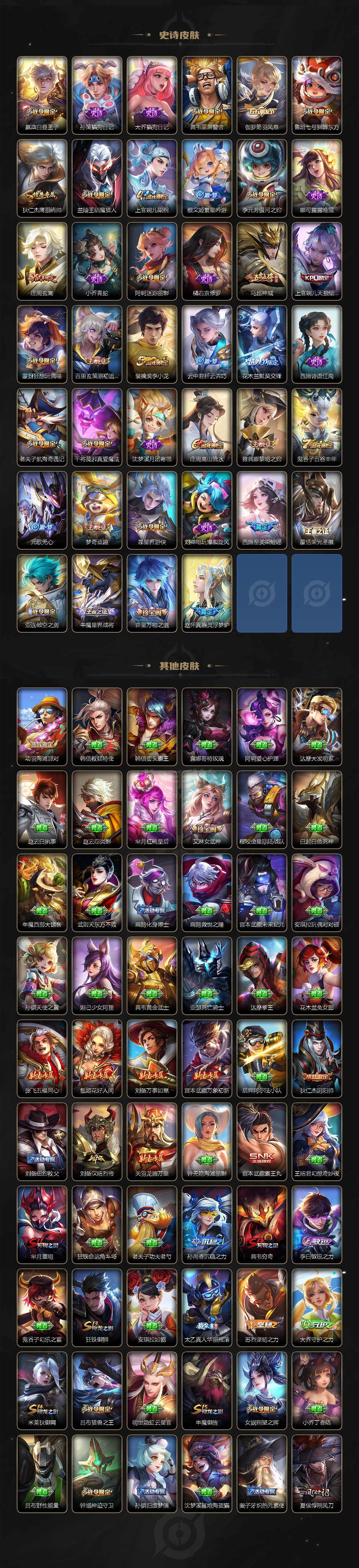 【限定皮肤】:大乔绒语心约,姜子牙天穹之誓,狄仁杰阴阳师,赵云皇家上将,墨子神迹守卫,