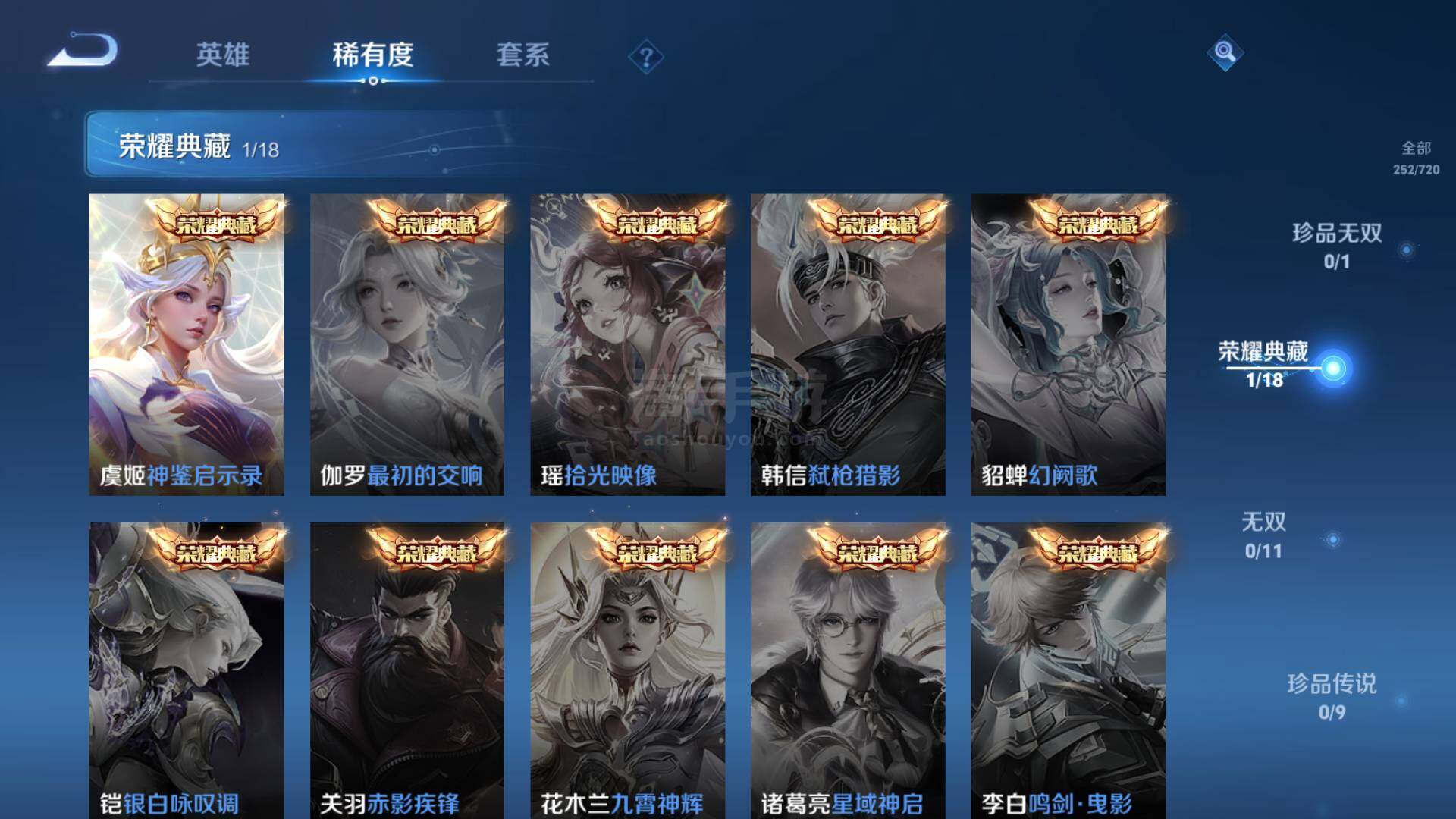 V7-252皮肤-1典藏-0珍品无双-0无双-0珍品传说-6传说-88史诗