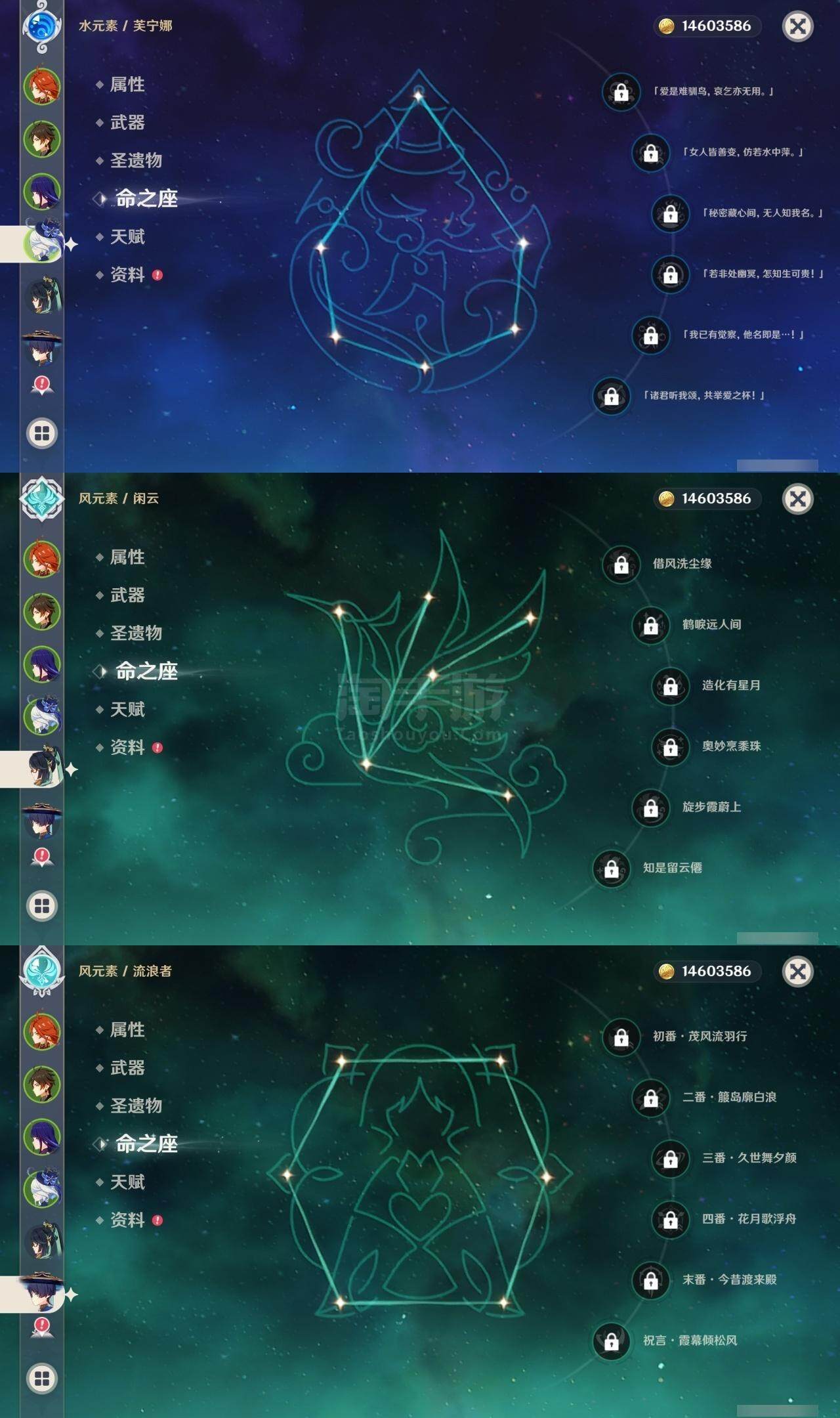 0命闲云,0命芙宁娜,2