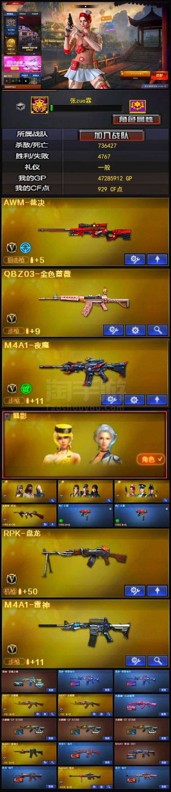 【热门武器】:QBZ03-金色蔷薇,死亡之眼*2,牛牛-AK47,M4A1-黑骑士,汤姆逊-烈龙,RPK-盘龙,沙鹰-修罗*6