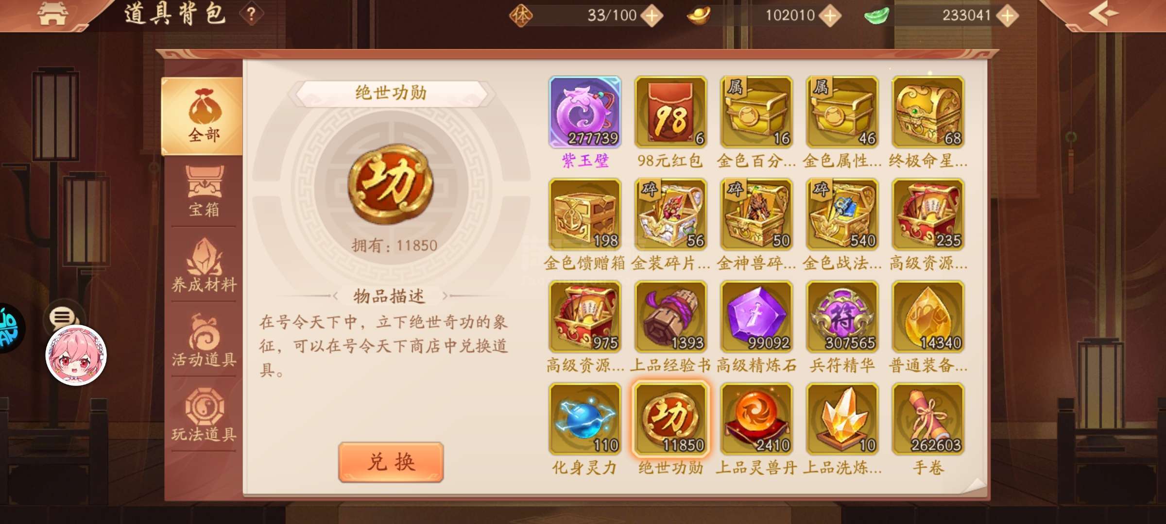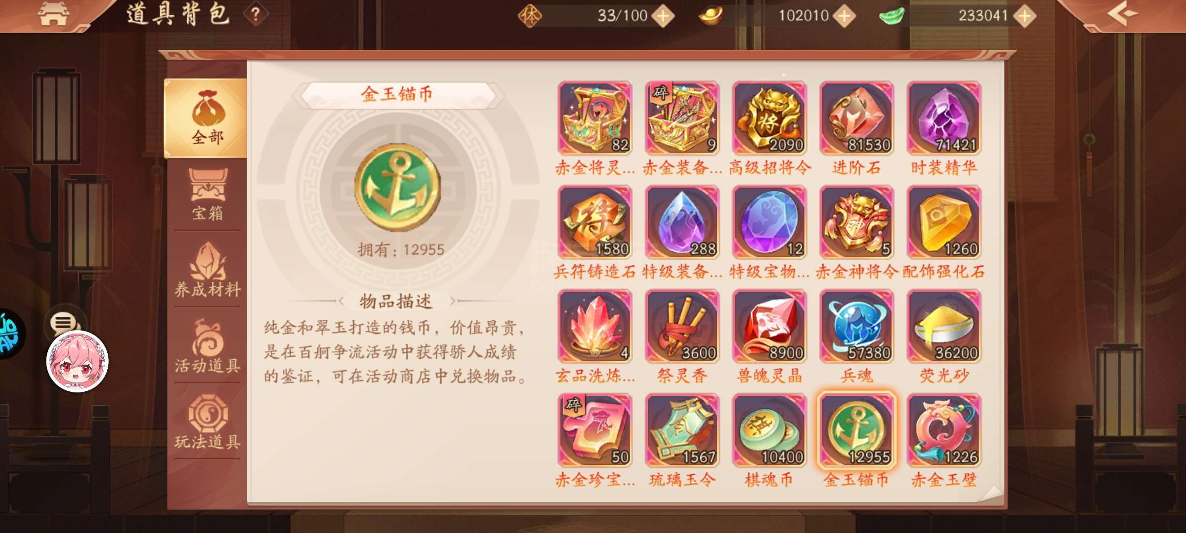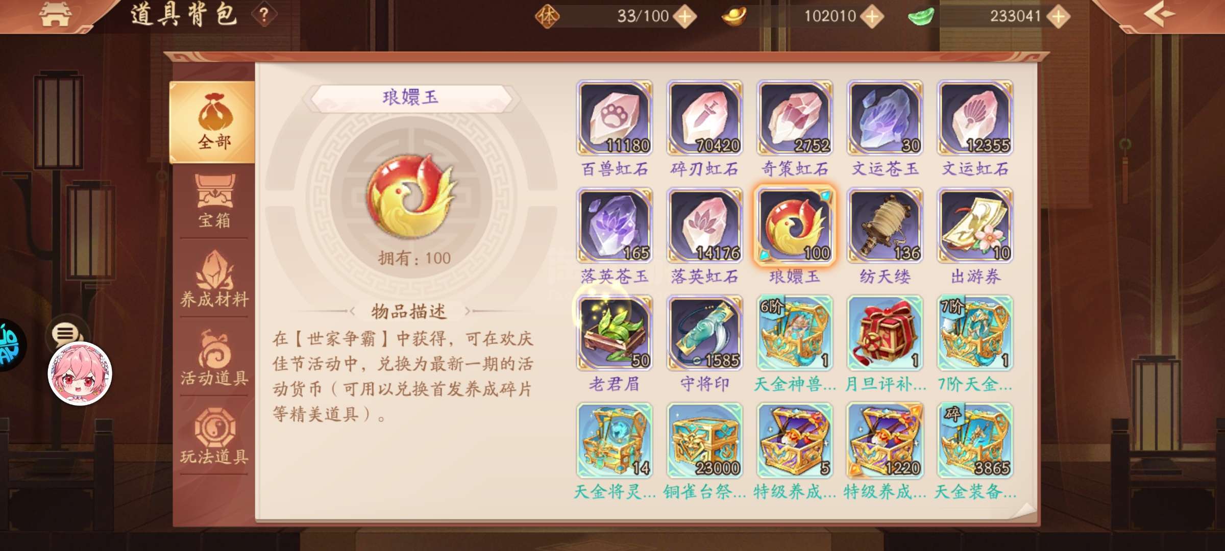 1w苍碎12900锚币11800功勋23w玉锭100琅嬛玉