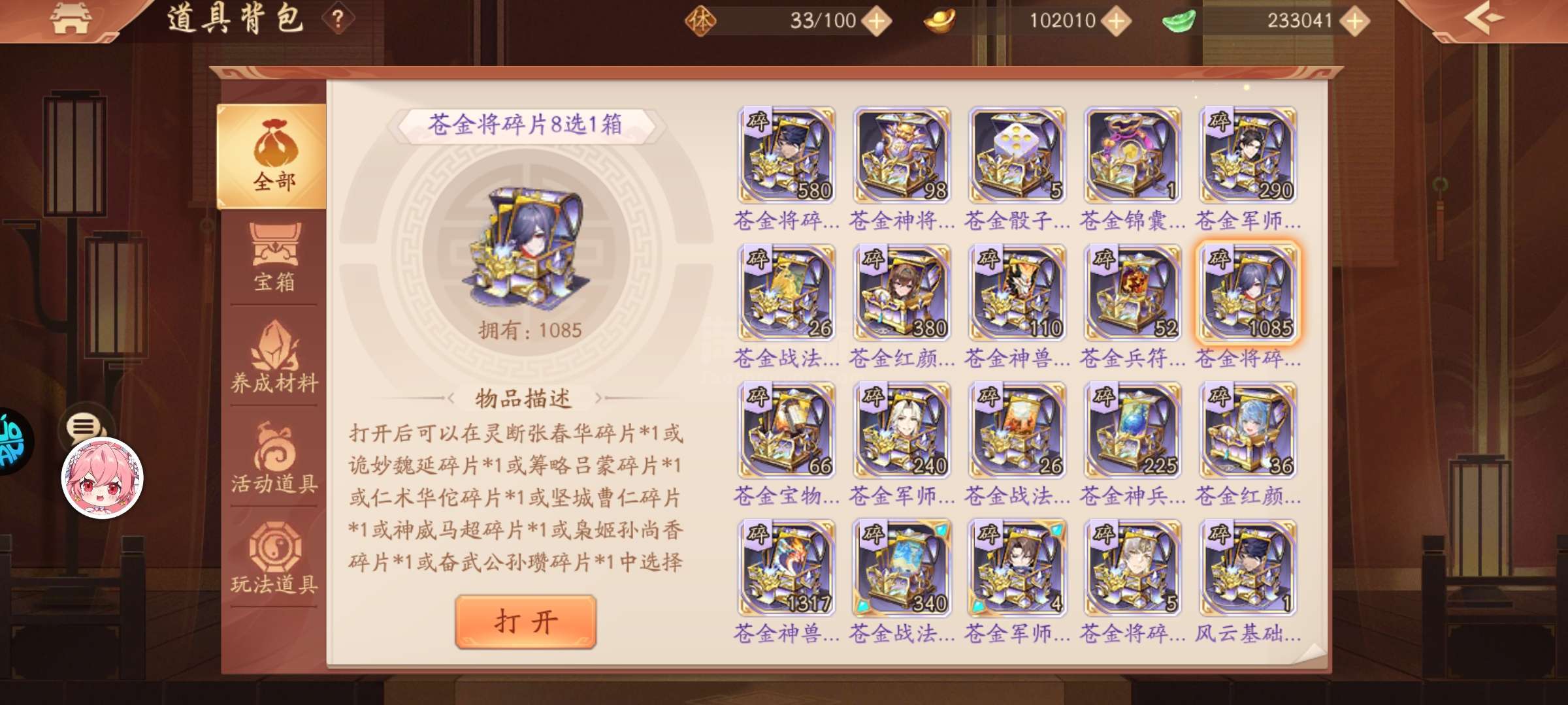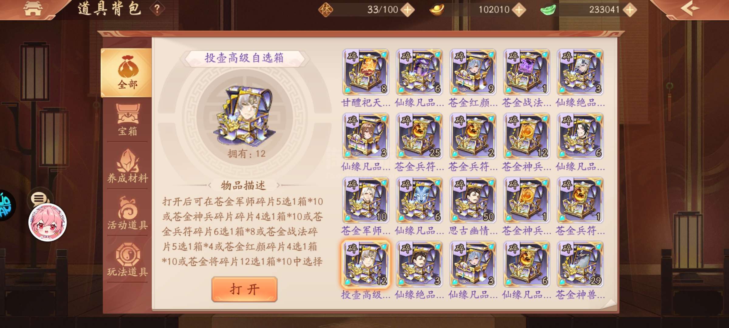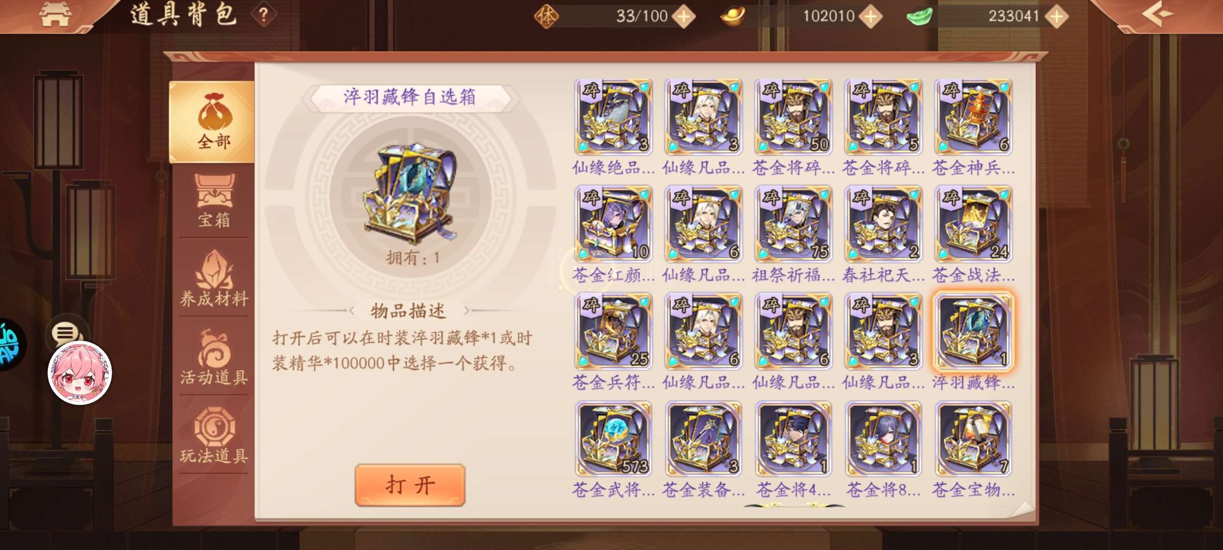 1w苍碎12900锚币11800功勋23w玉锭100琅嬛玉