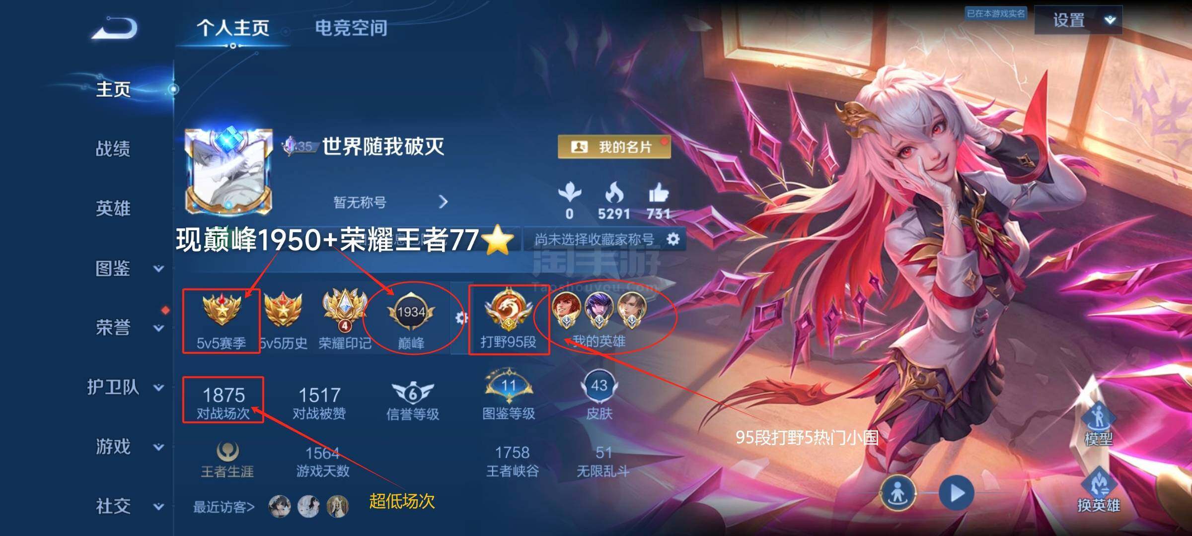 王者荣耀【安卓QQ】【商品标题】:超低场次95段打野5小国马超暃澜老虎宫本,3个1.8w战,1.8