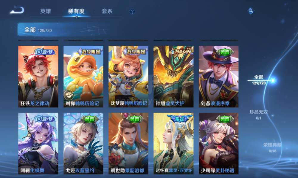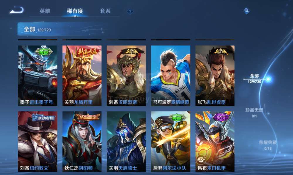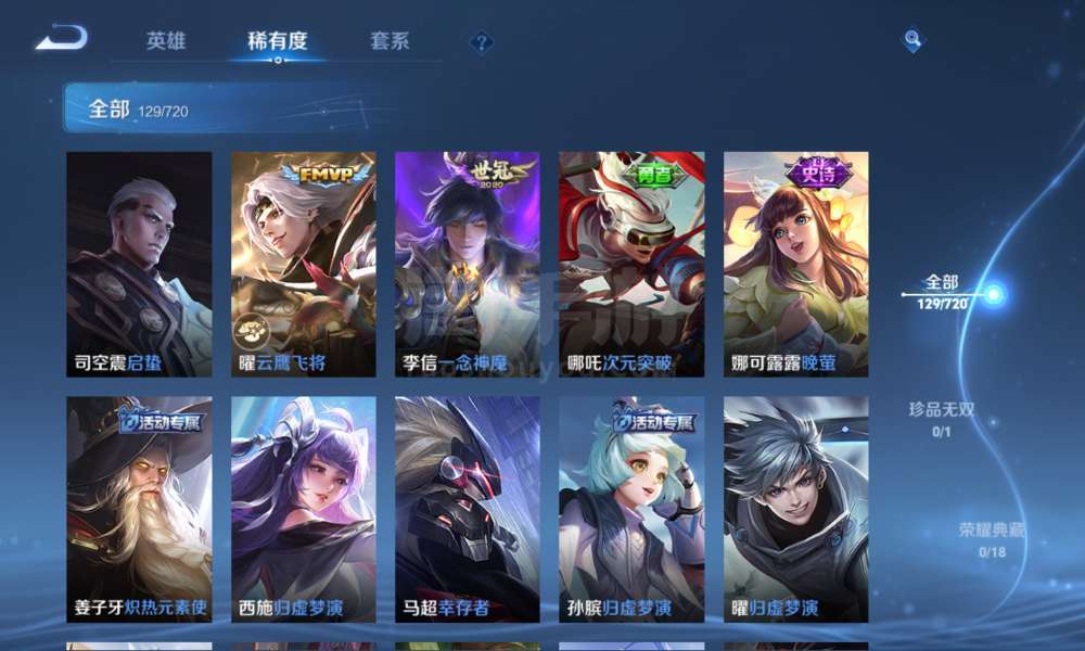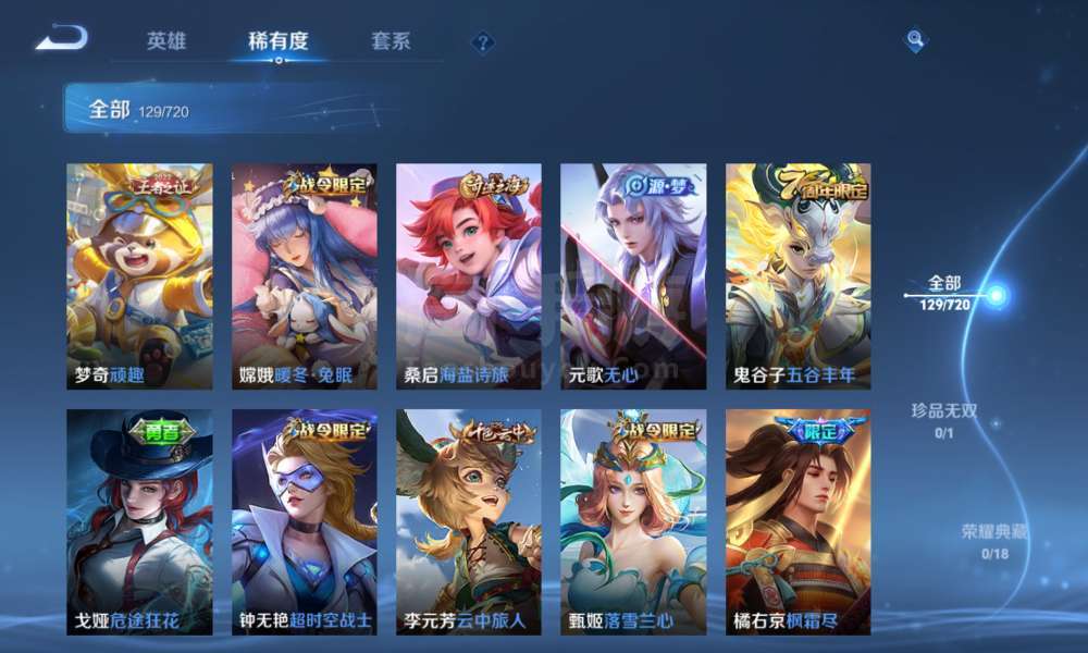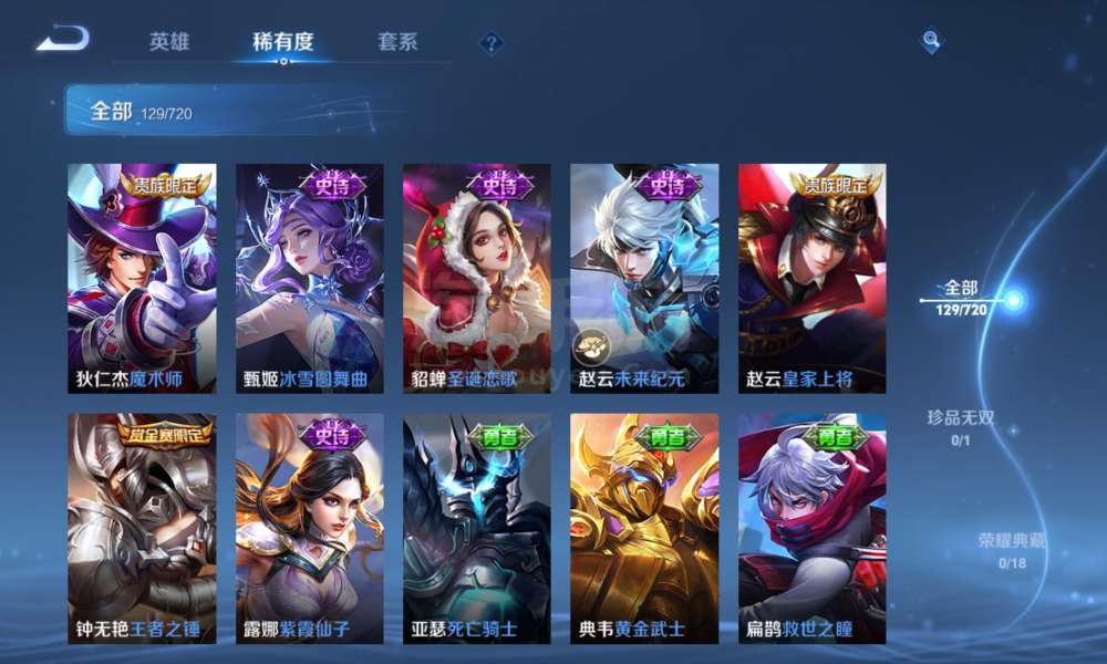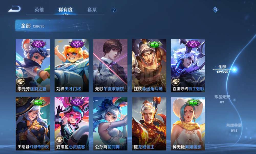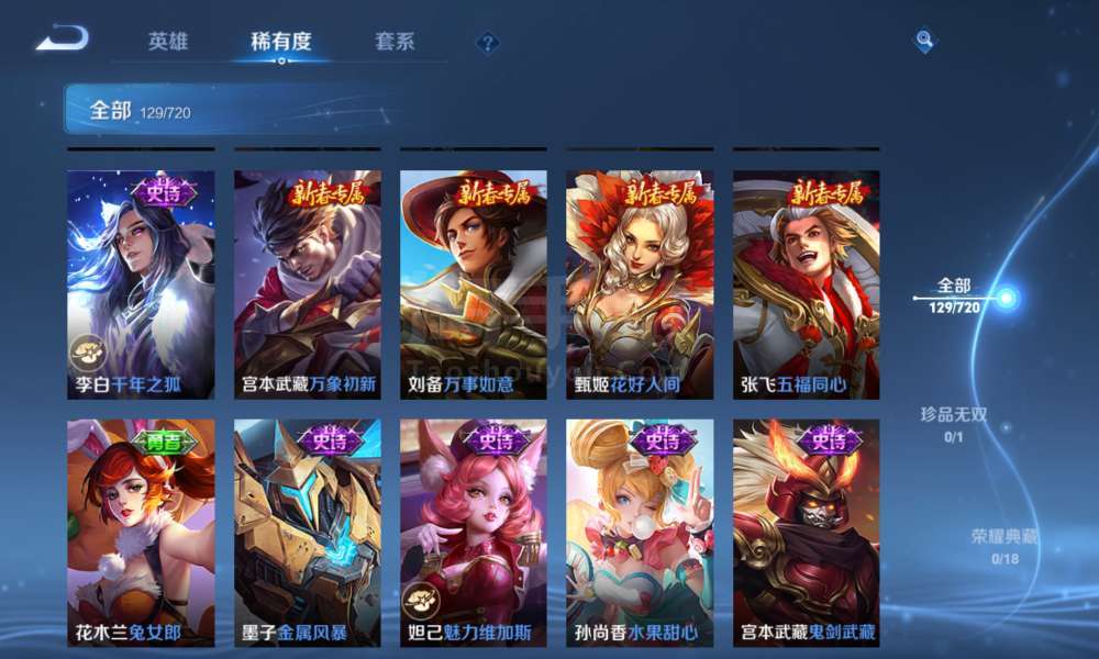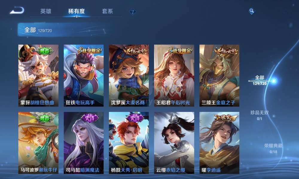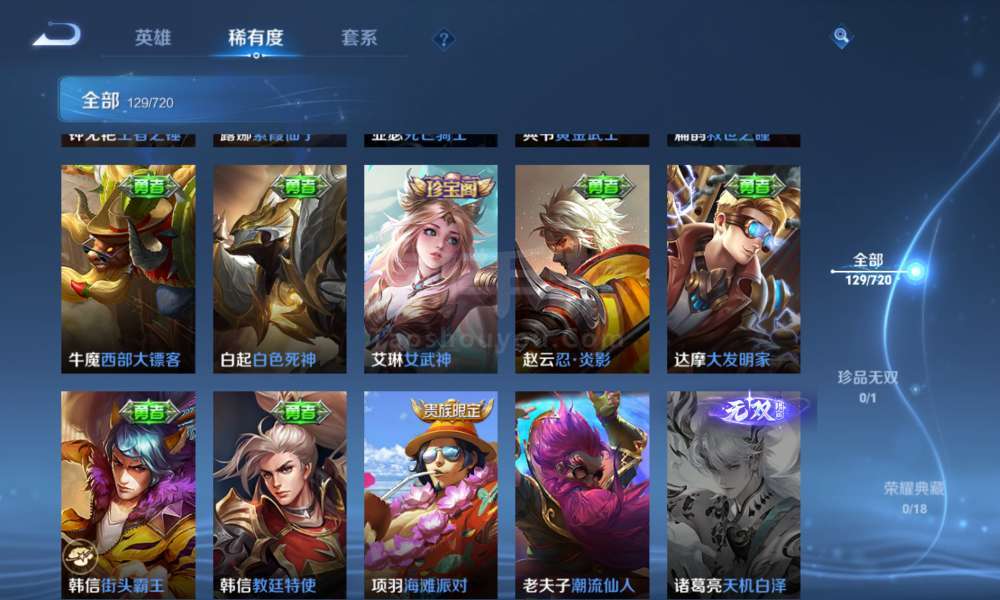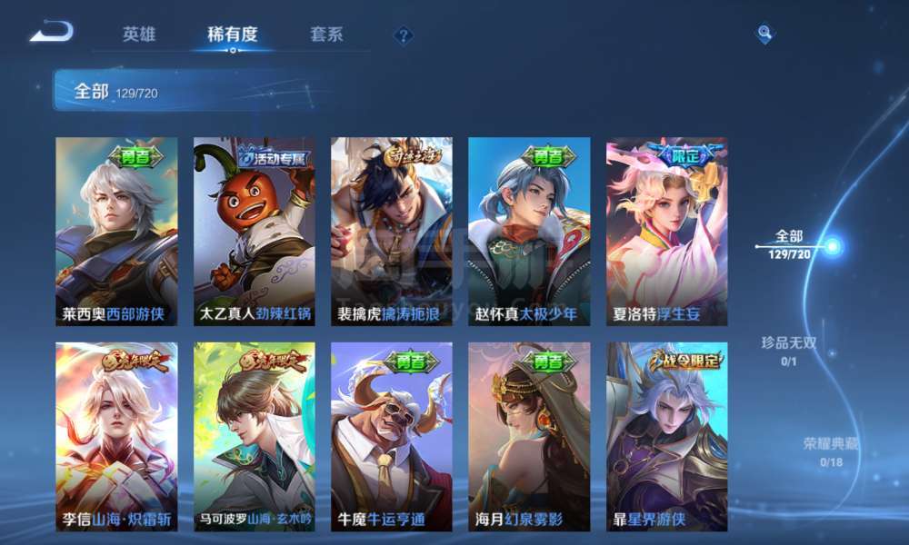 登上就能玩,李信全皮,一珍品传说,9传说,37史诗,46限定,67勇者,