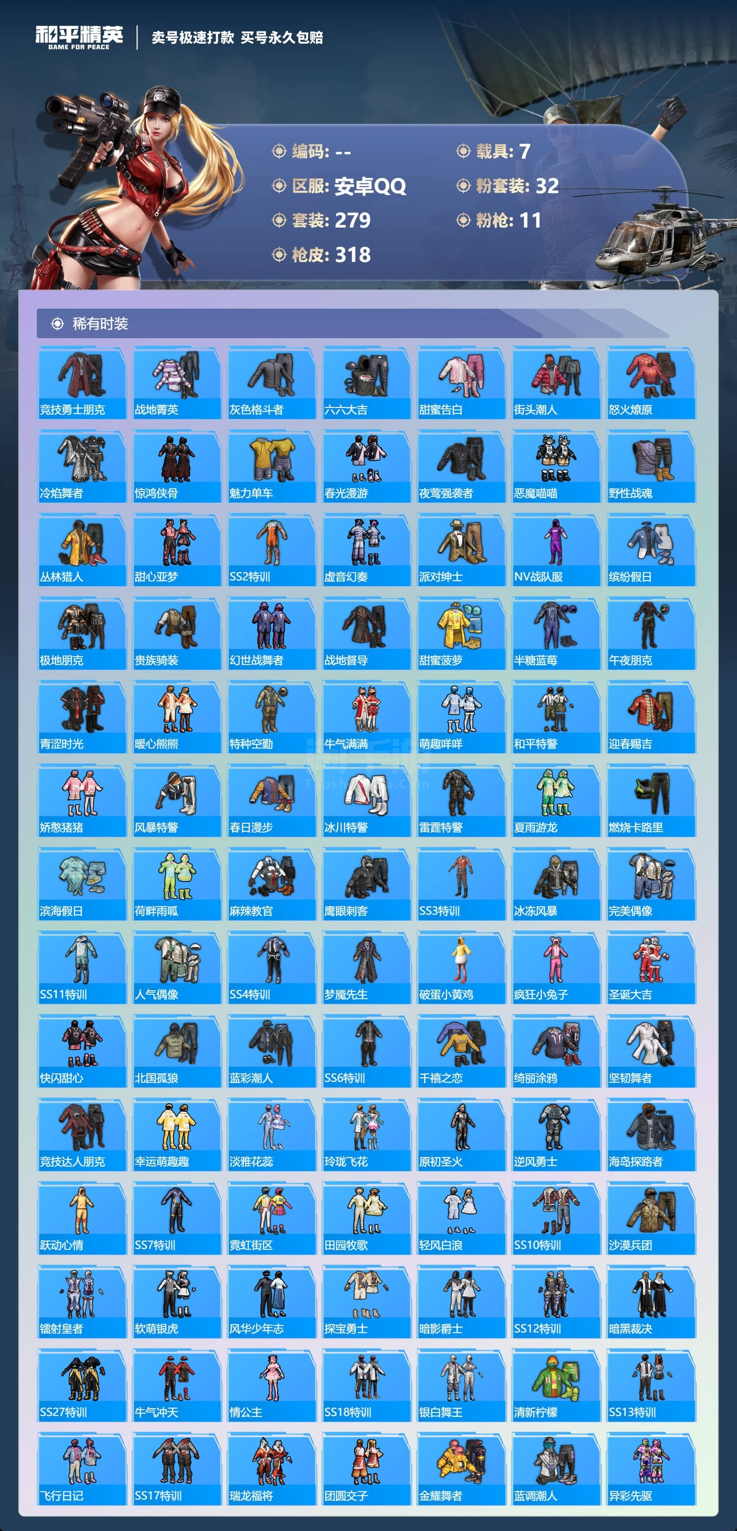 a3709/安卓QQ/1165璀璨碎片/-22王牌印记-32粉装-11特效枪-7载具-127108热