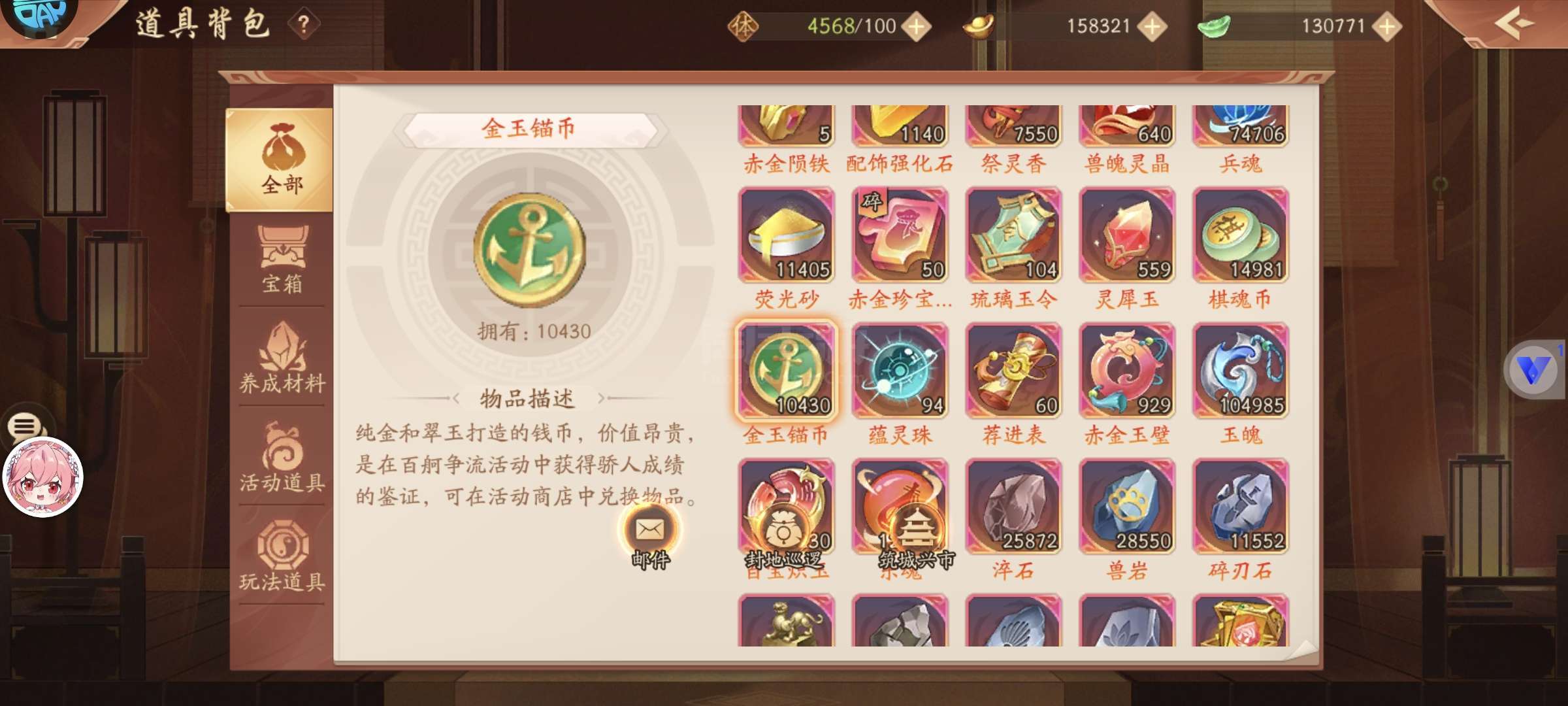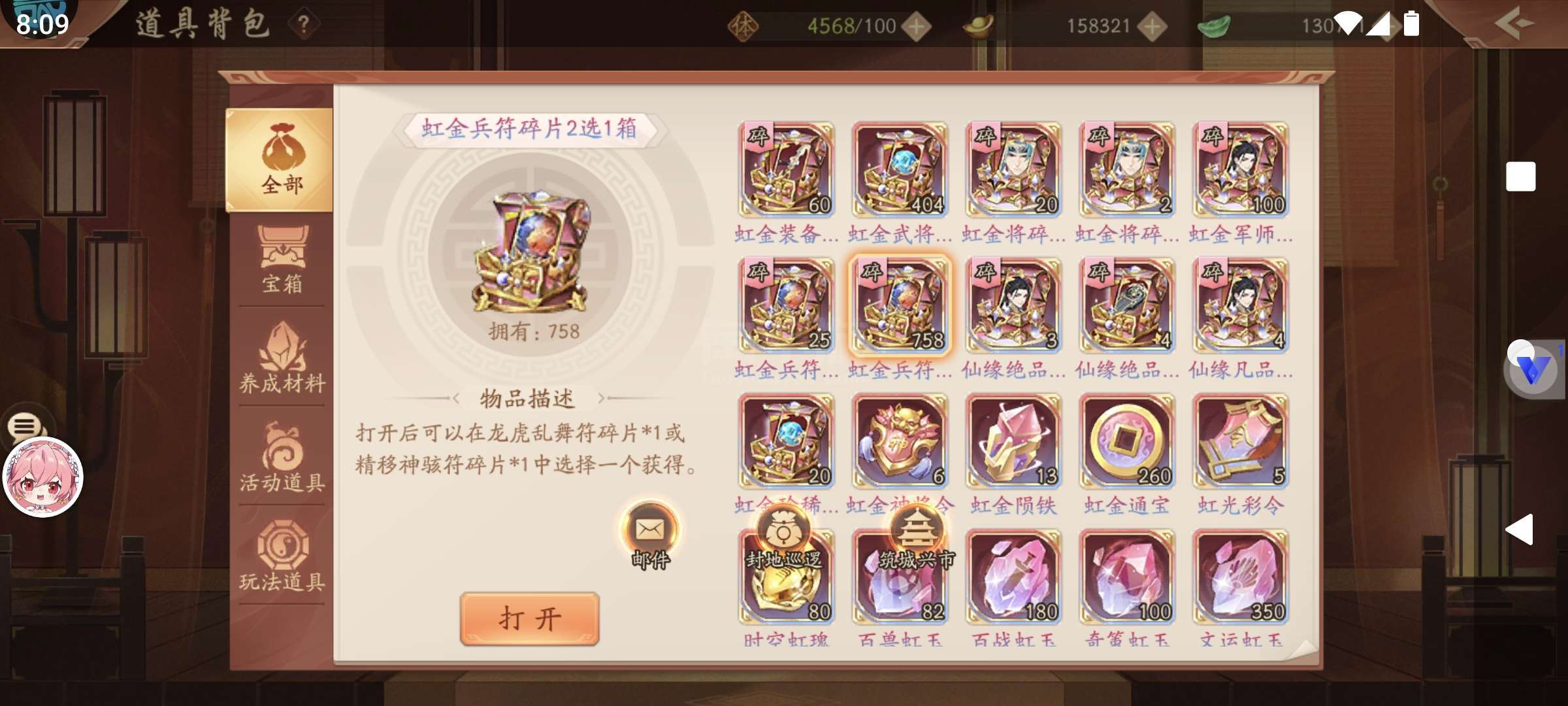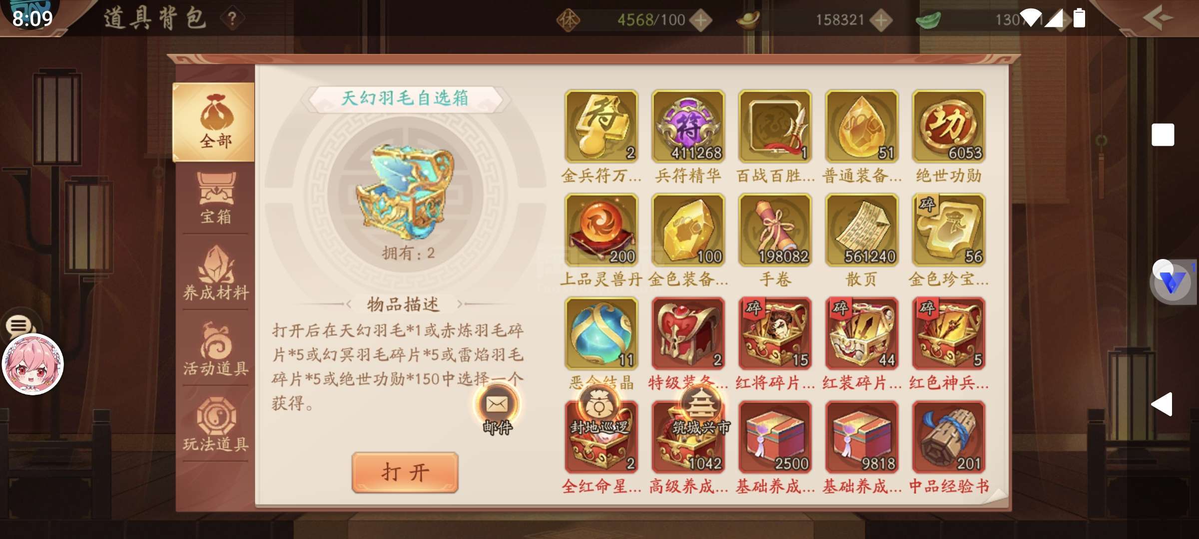 超值,一万船币,13万玉,6300功勋,750兵符箱,400练神箱,300通宝,四星军师,