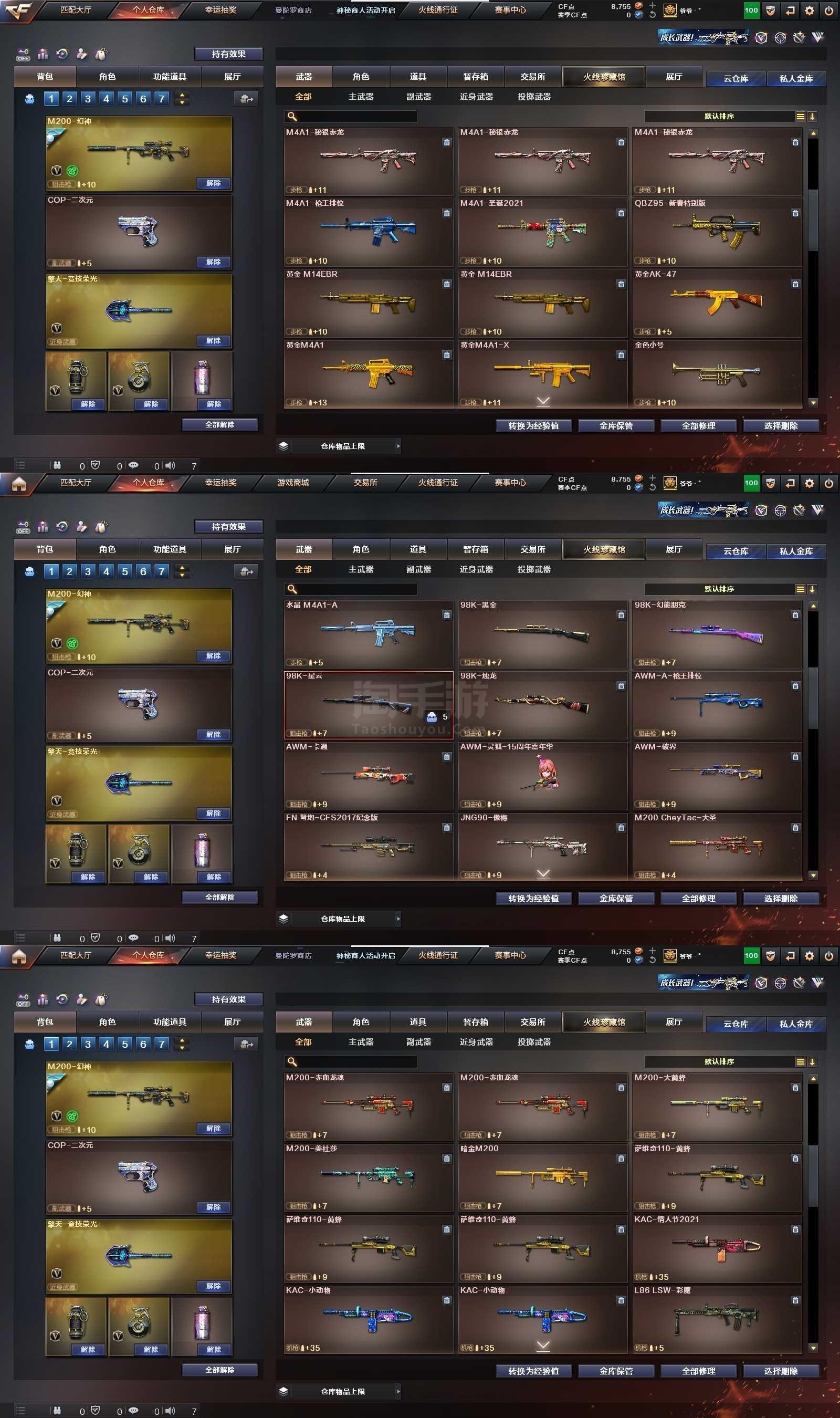2093691_上海/东部/实名可改可排位/42V2王者4炫金【主武器类型】 M200-幻神 (荣耀世冠白鲨2023) HK417-朱雀 Barrett-毁灭 (青帝+音效卡) M4A1-雷神 QBZ03-金色蔷薇 M4A1-黑龙 王者之势觉醒版 M4A1-黑骑士 M4A1-S神 *2 AK47-火麒麟 *2 加特林-炼狱 AA-12-雷霆 AWM-天龙 *2 炫金雷神 炫金骑士 *3 黑龙吞噬者