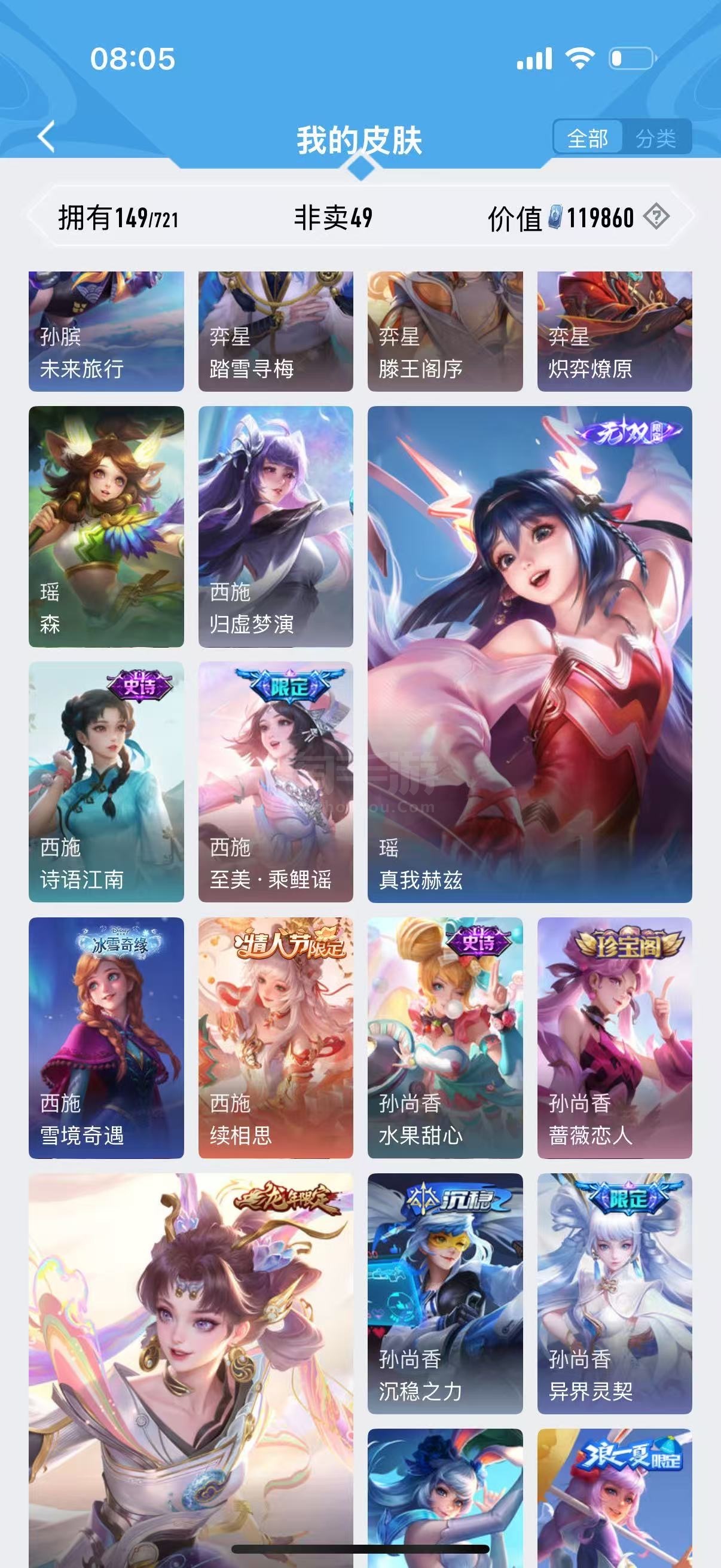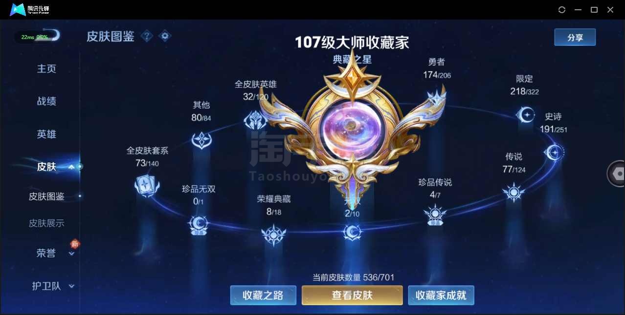 安卓QQ V10 皮肤价值:585766 荣耀典藏:9 无双皮肤:2 传说皮肤:77 史诗皮肤:188 英雄数