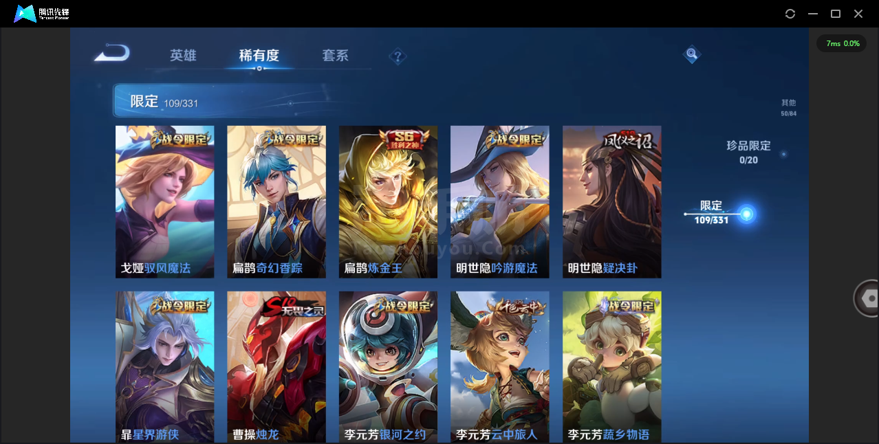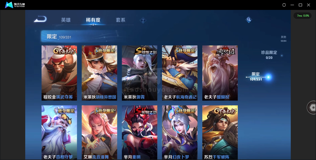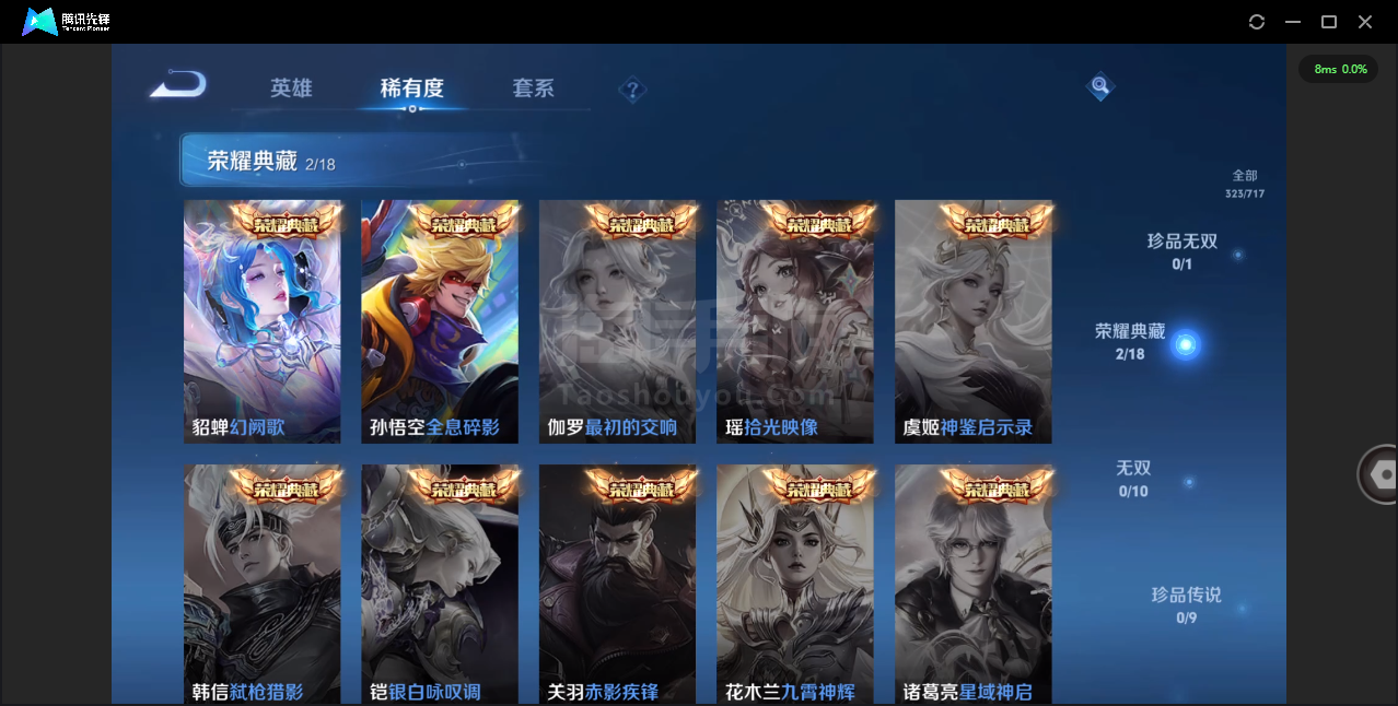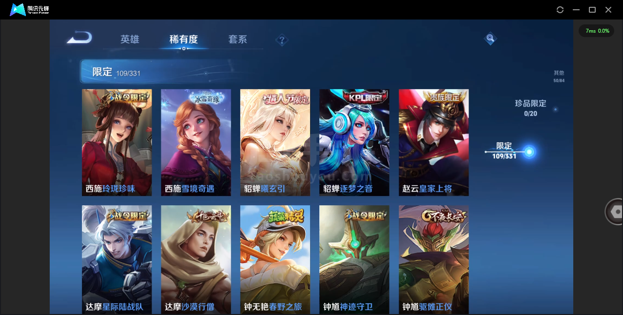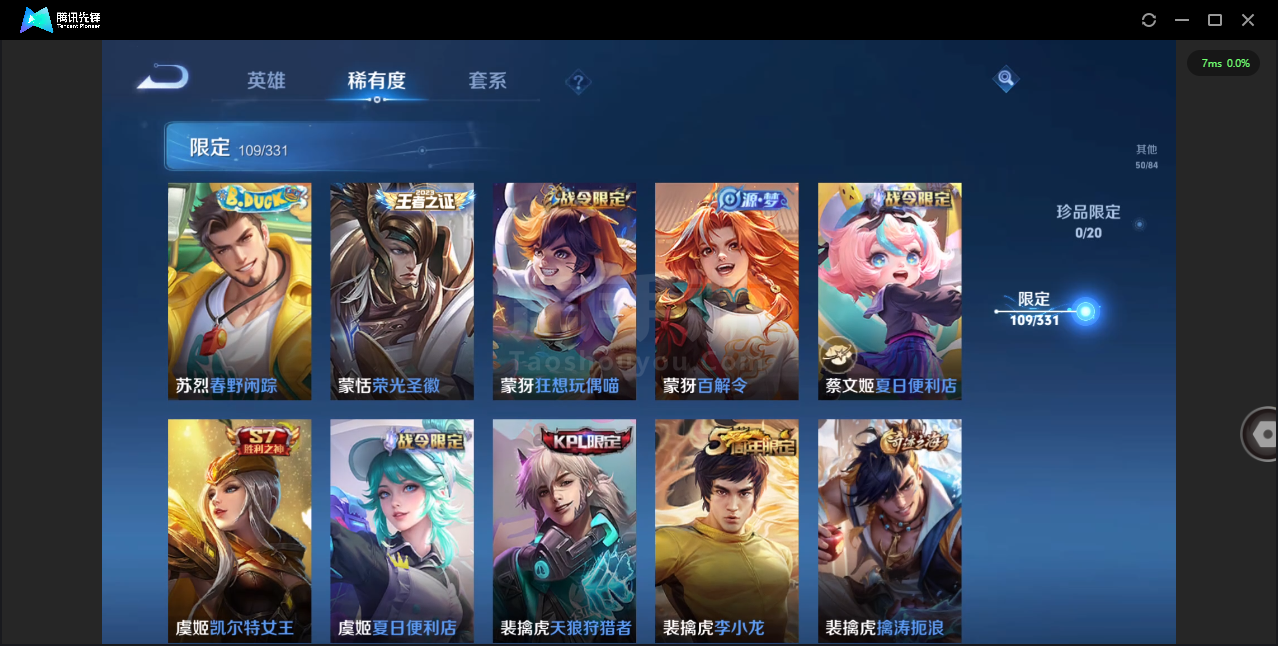 可二次-贵7-124英雄-323皮肤-2典藏-4传说