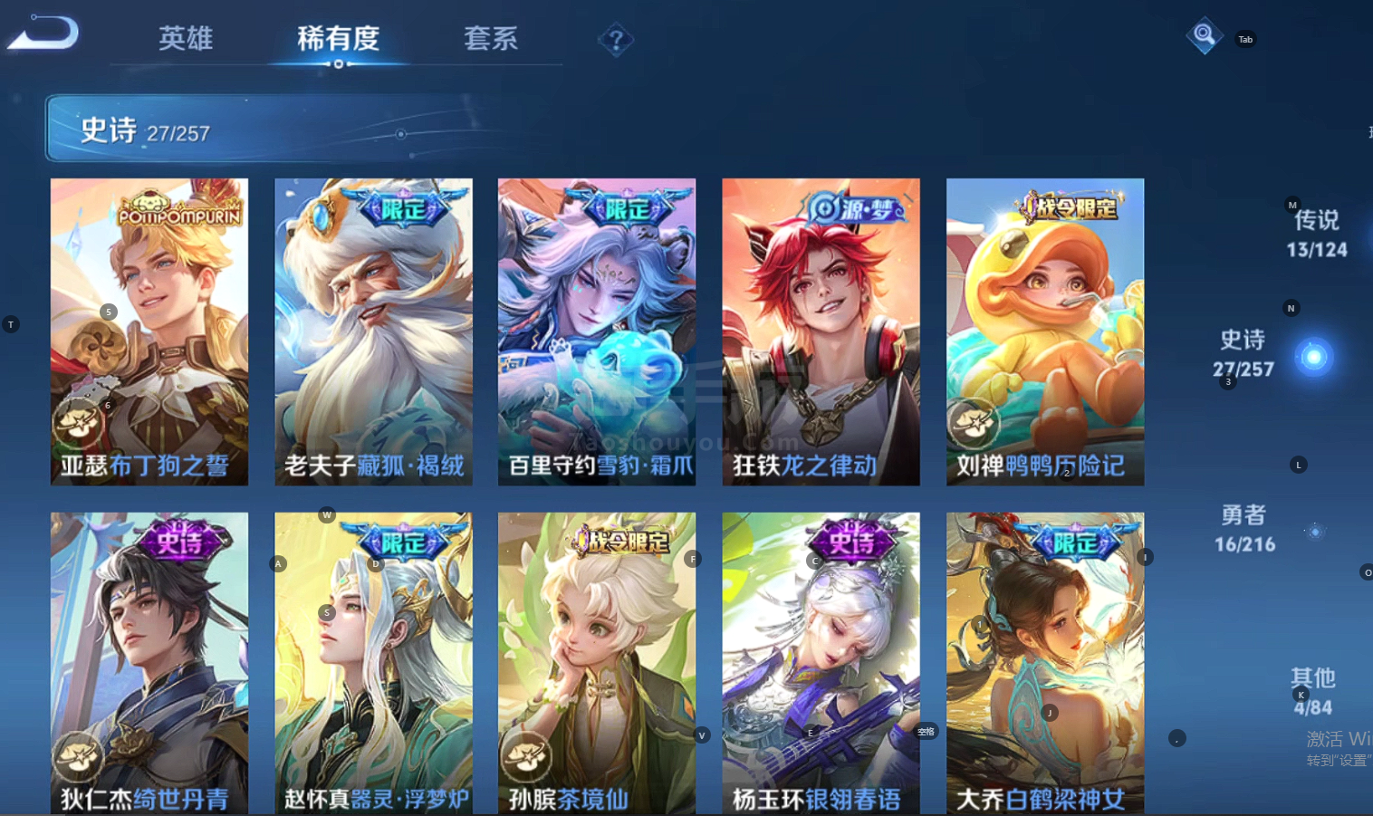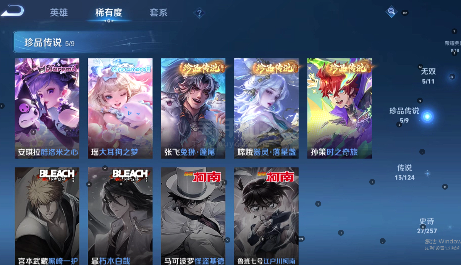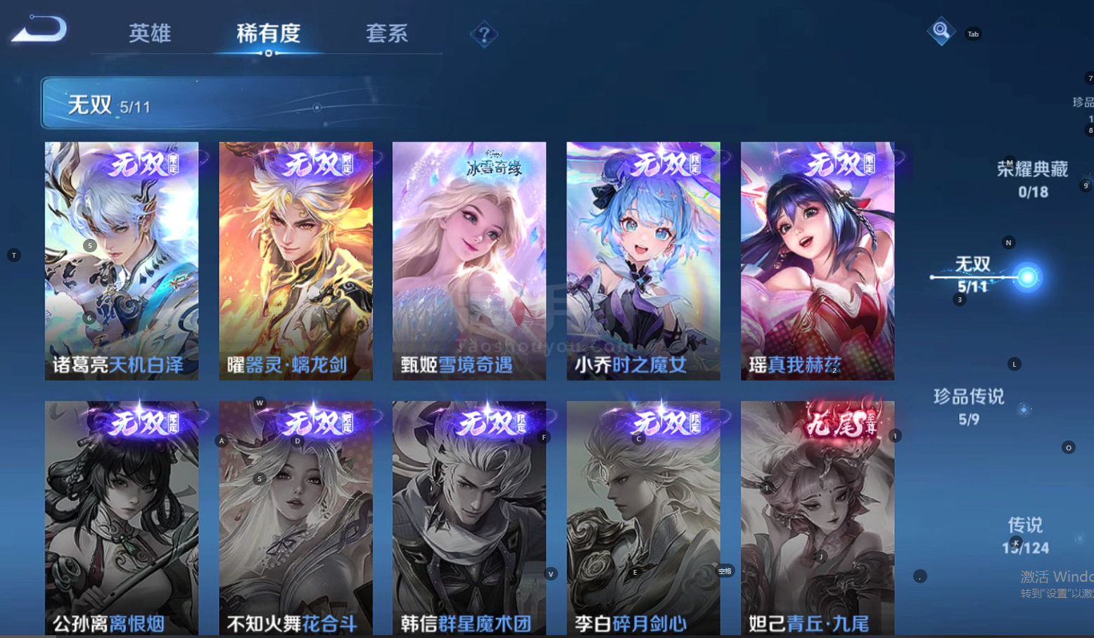 苹果QQ v9 1珍品 5无双 13传说 26史诗 71皮 王者荣耀蛇年年限无双皮珍品传说