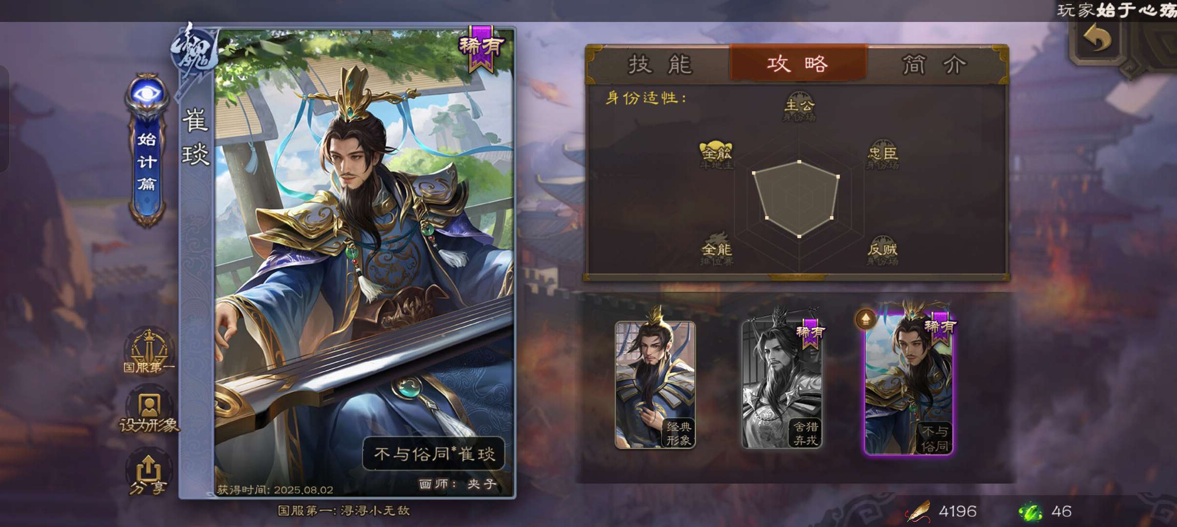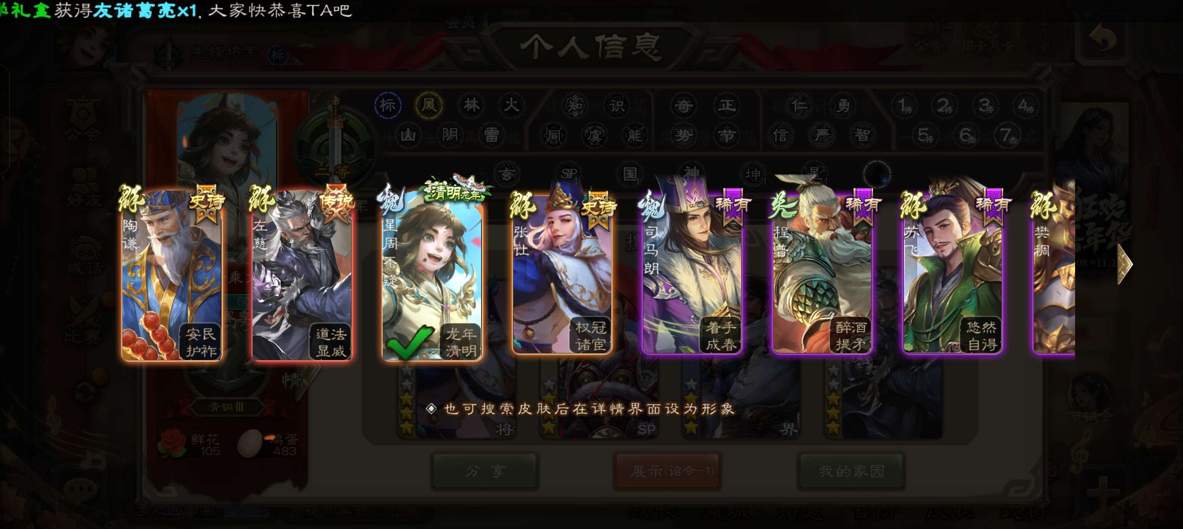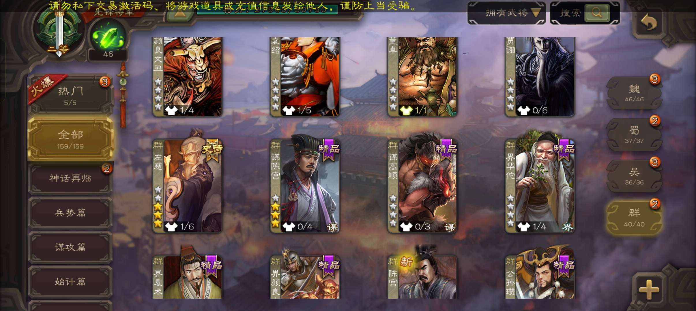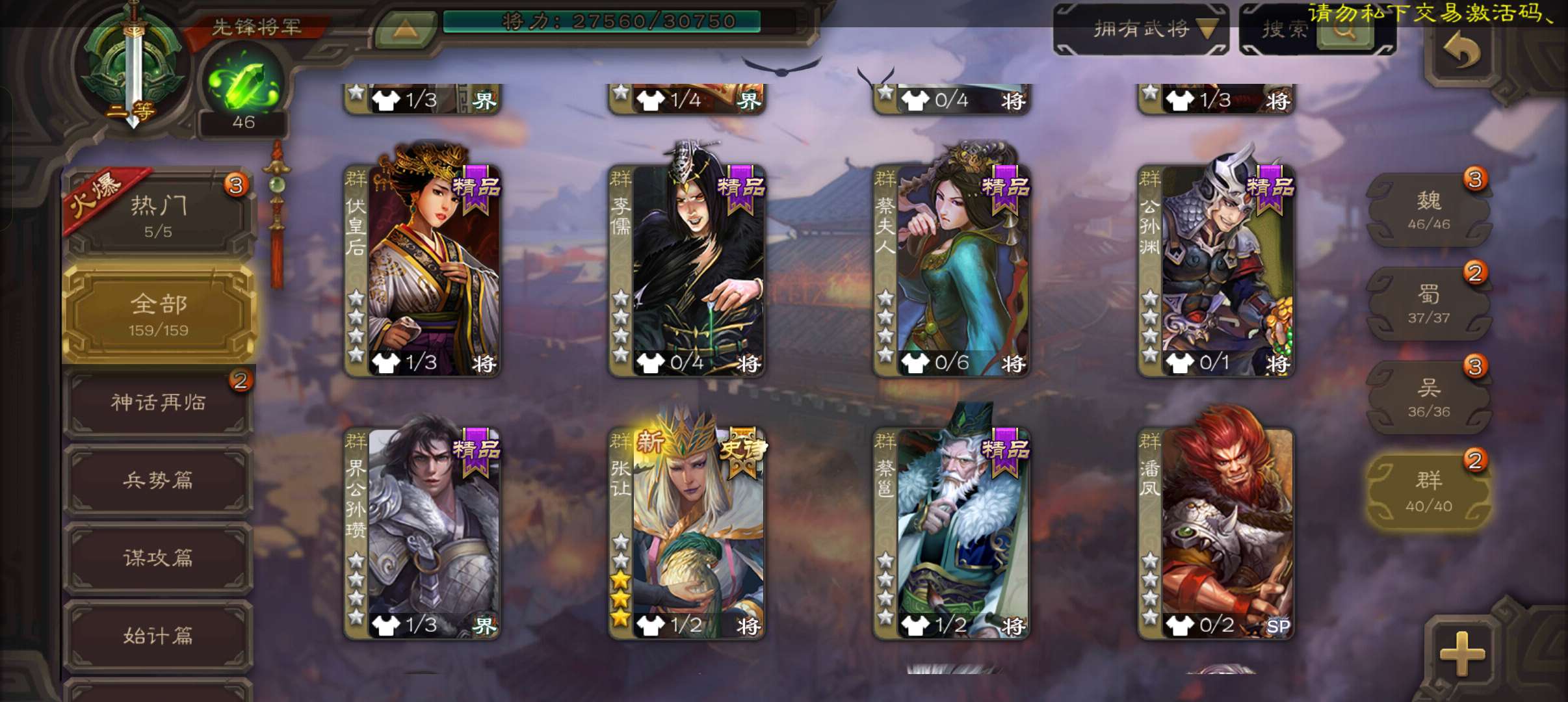6史诗先锋,金皮张让公孙康界于禁回廊左慈带皮杨修贺齐6史诗,谋高顺谋韩当崔琰甘夫人159将