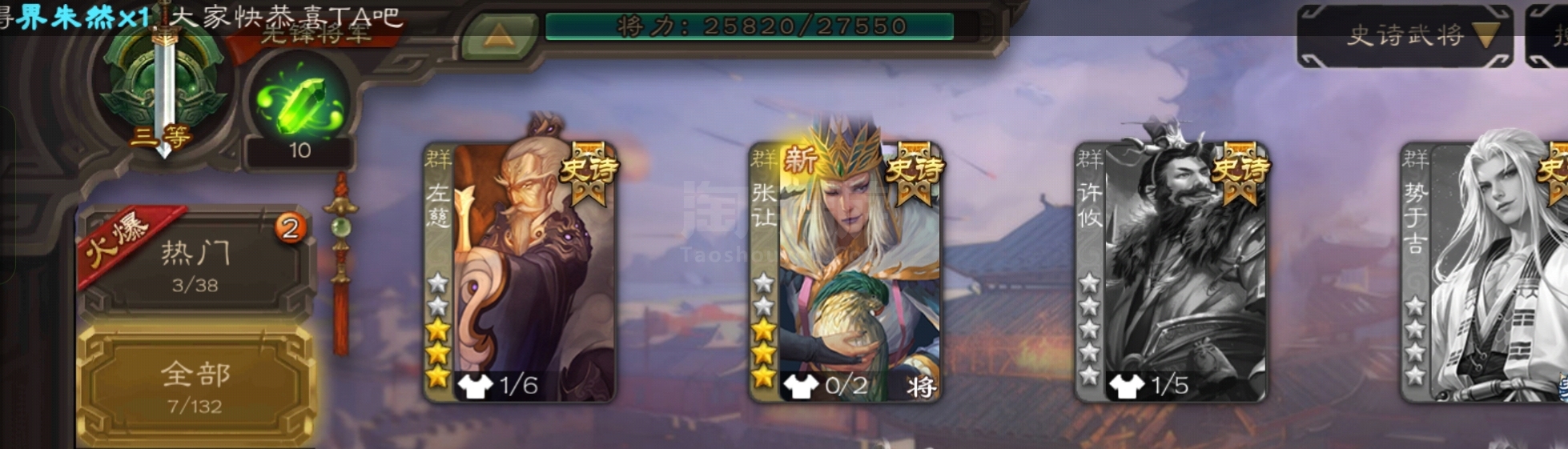史诗武将数量: