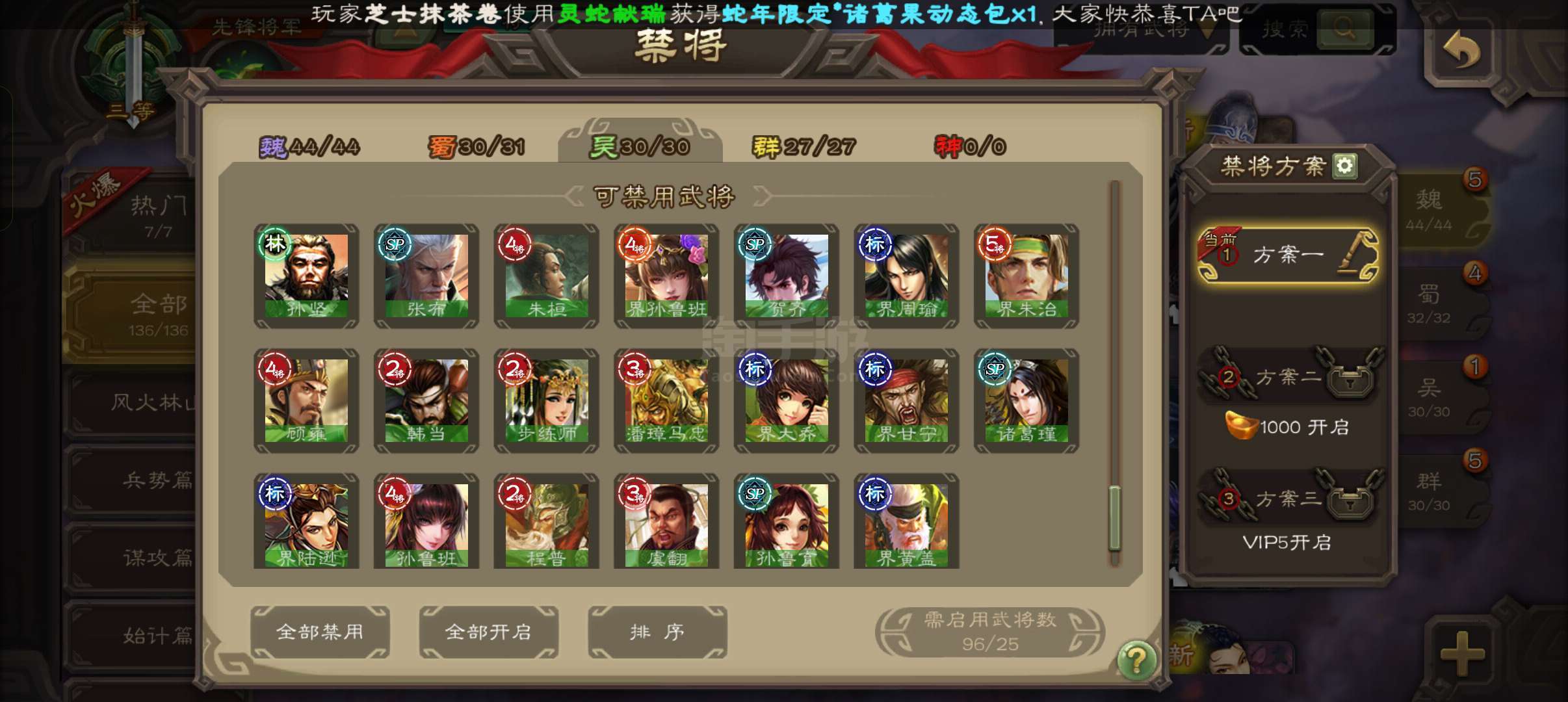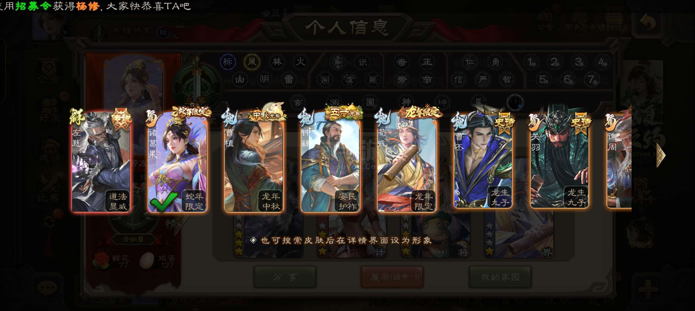 7史诗先锋,回廊动左慈张让花鬘金皮谯周嵇康杨修贺齐,动钟繇动界曹植动界荀彧谋高顺界吕布136将