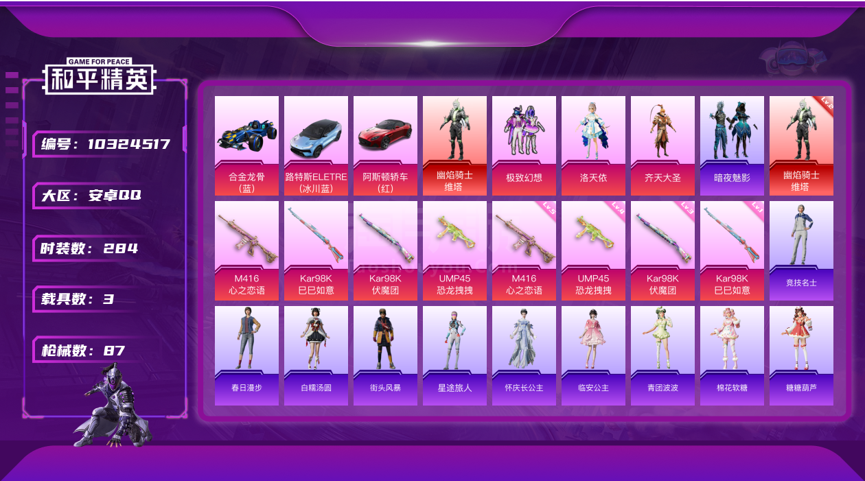 安卓QQ】1红装 3粉装 4特效枪 3载具 4印记 可二次 可修改实名 二级神装:二级幽焰骑士-维塔(2级维塔