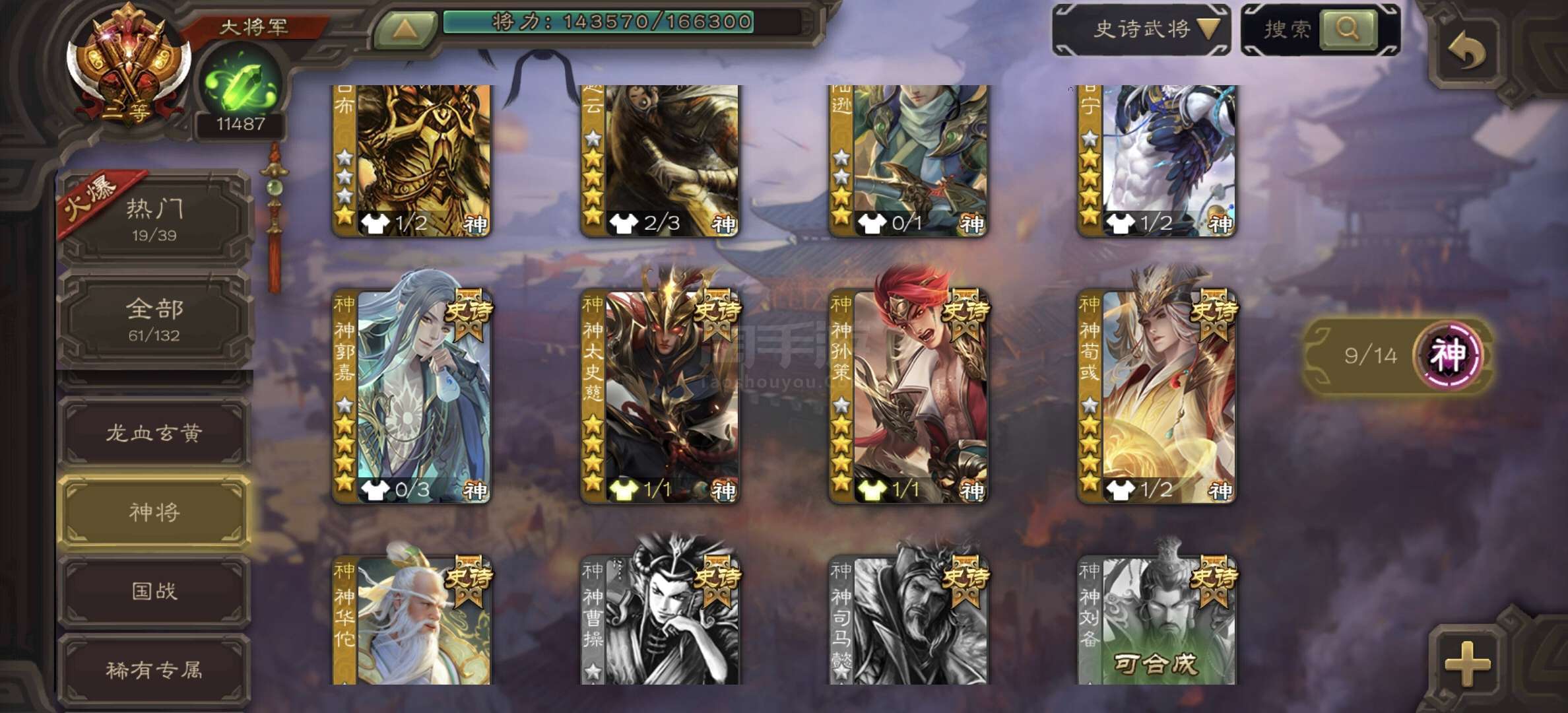日月双神 神郭嘉 神荀彧 刘焉 曹髦神甘 神孙策 神陆逊 背包带63宝珠 一万多将魂