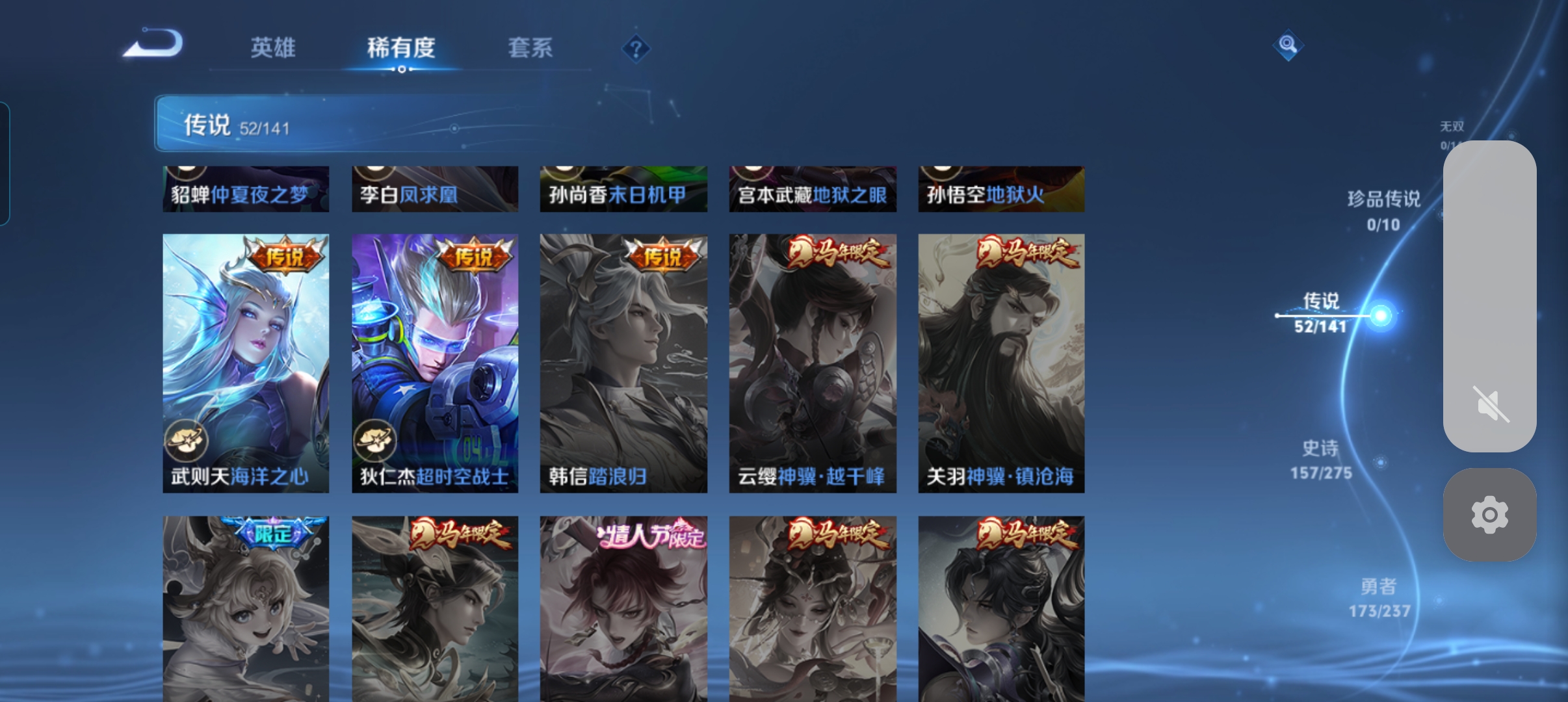 4典藏52传说,465皮贵10,还有三四十个按键,五个星传说,现在星元币快能再换两个星传说了