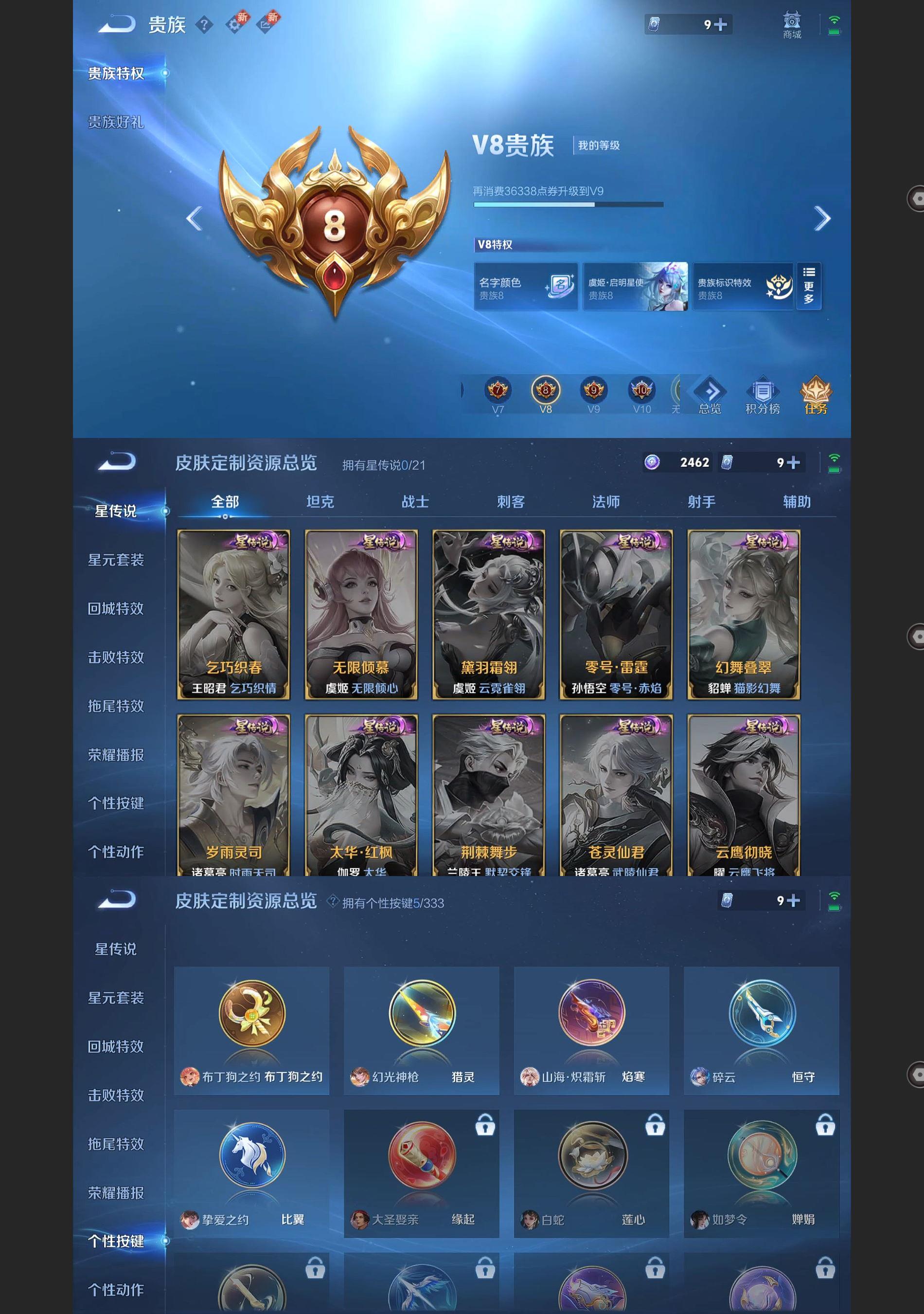 [王者荣耀]V817传说65史诗259皮肤最强王者