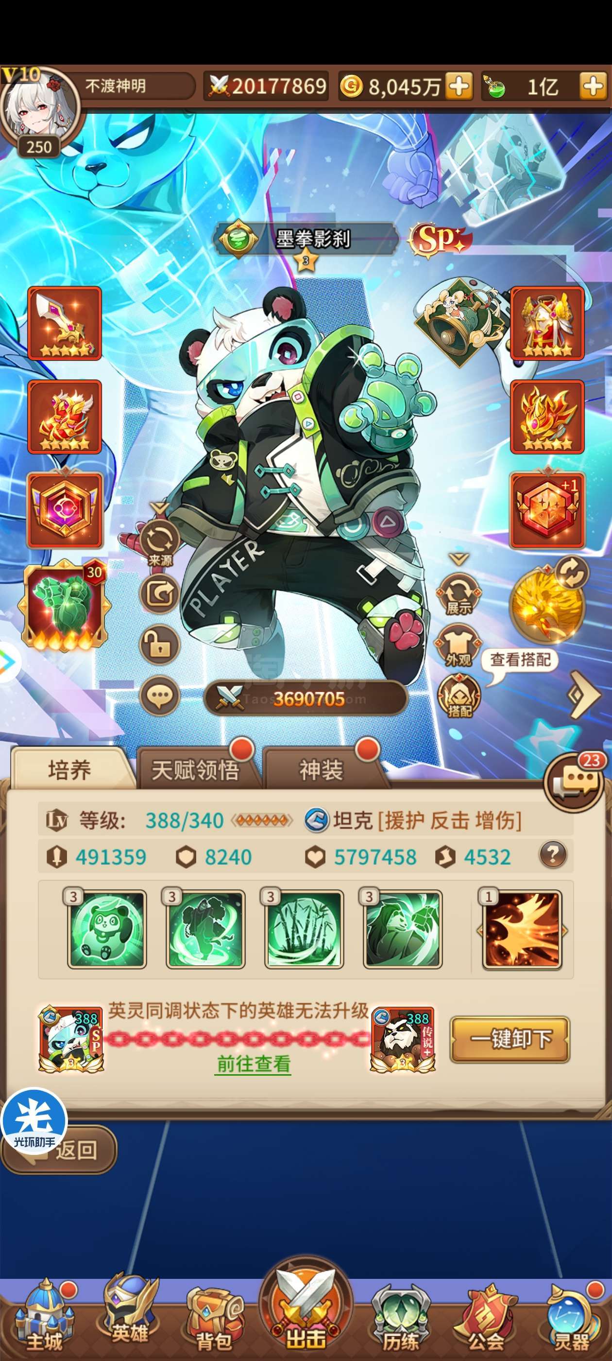 闪烁之光渠道:安卓官方满格哪吒,满格熊猫,目前白龙马配队,可转火哈,霍哈,新神装有四件未开