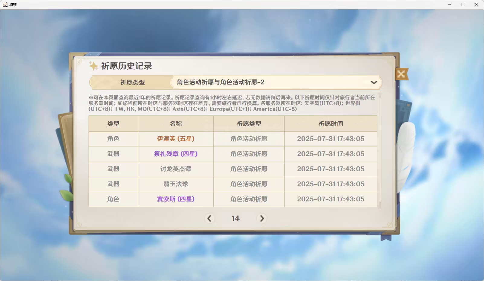 6命夜兰+精2魔术弓,0+1伊涅芙月感电芙宁娜雷神,夜兰皮肤已买,卡池垫了70可以抽奶奶0+1