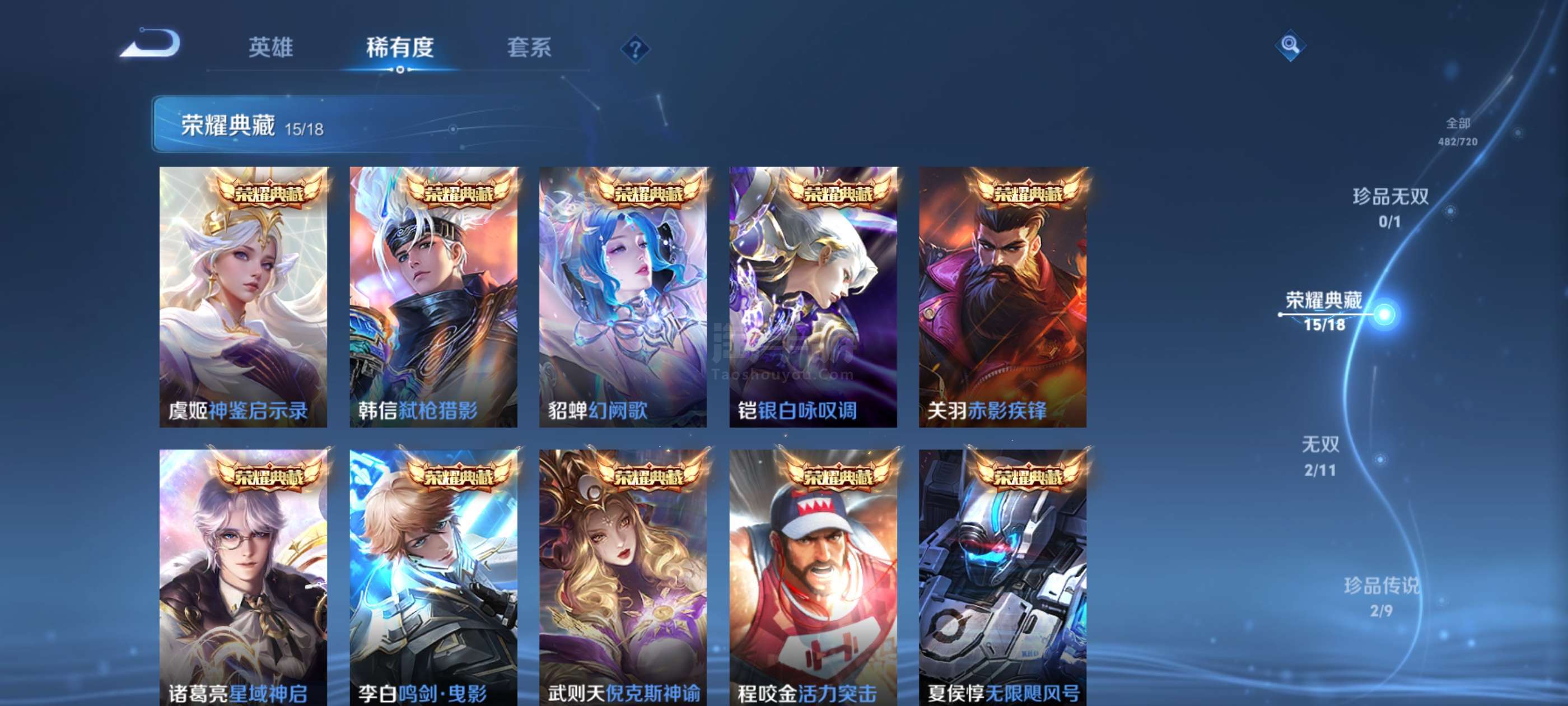 v10,现在共享戳戳都还有300多,15个荣耀典藏,482皮 一个小兵