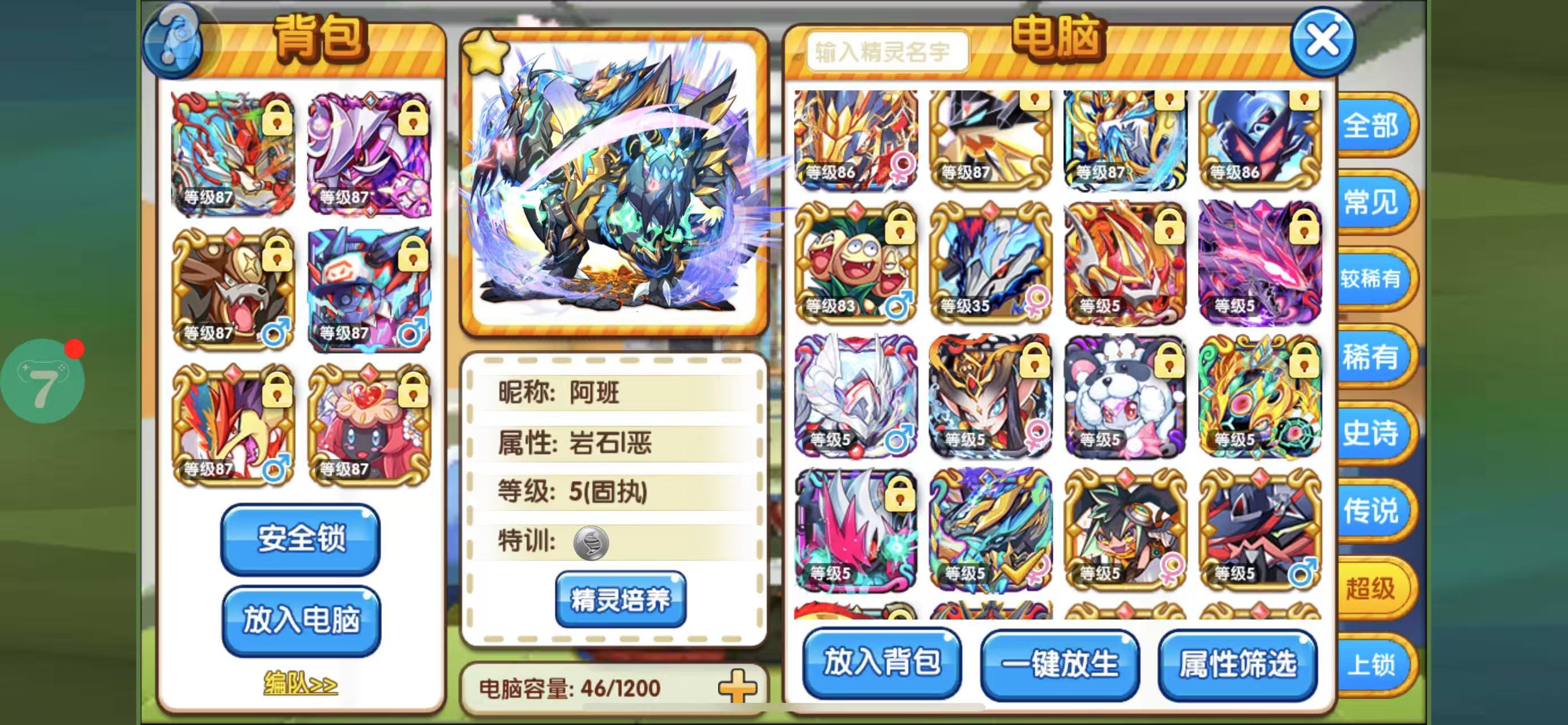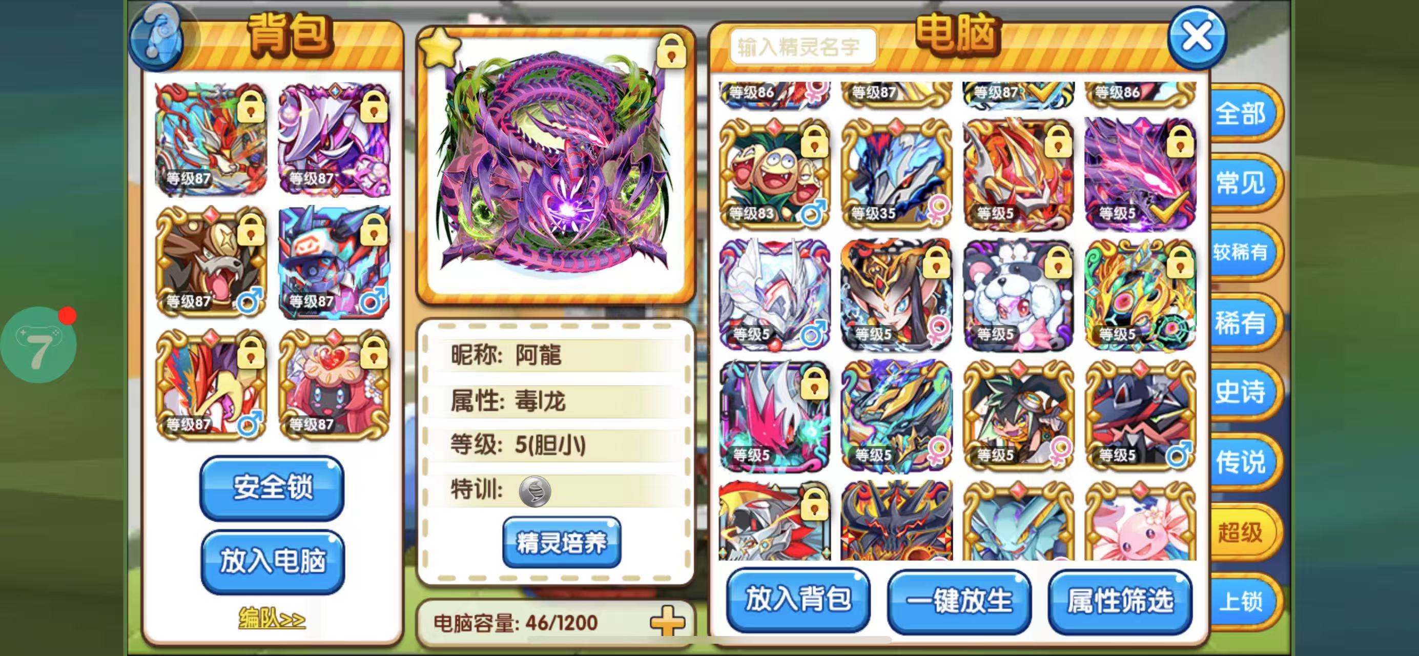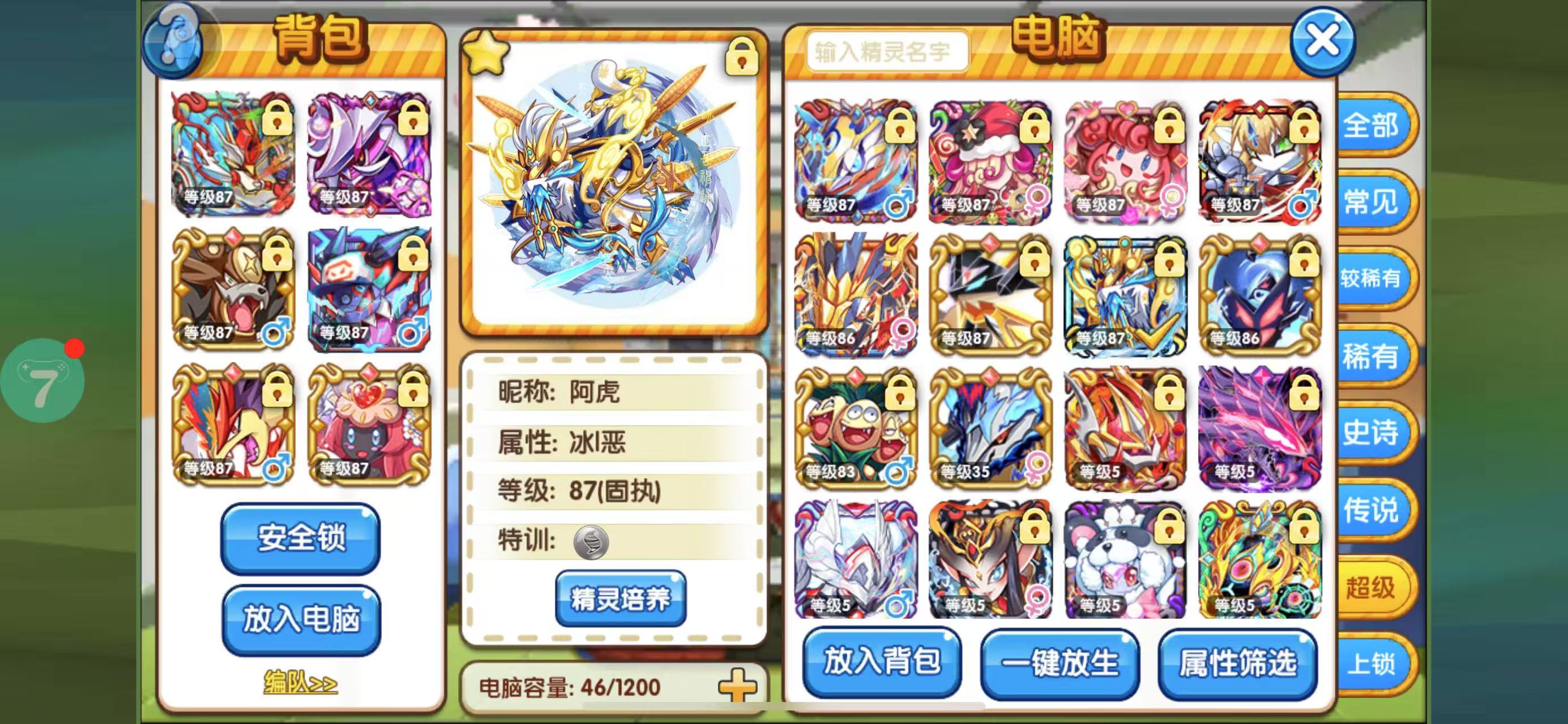 绝版银蛙满配剑狗毒龙水龙海皇牙等等