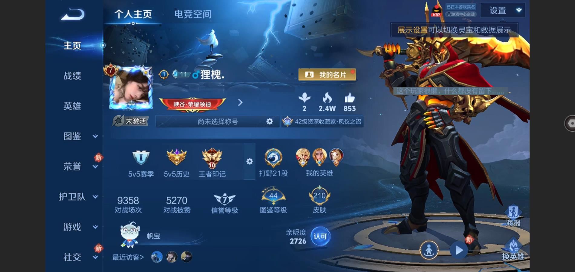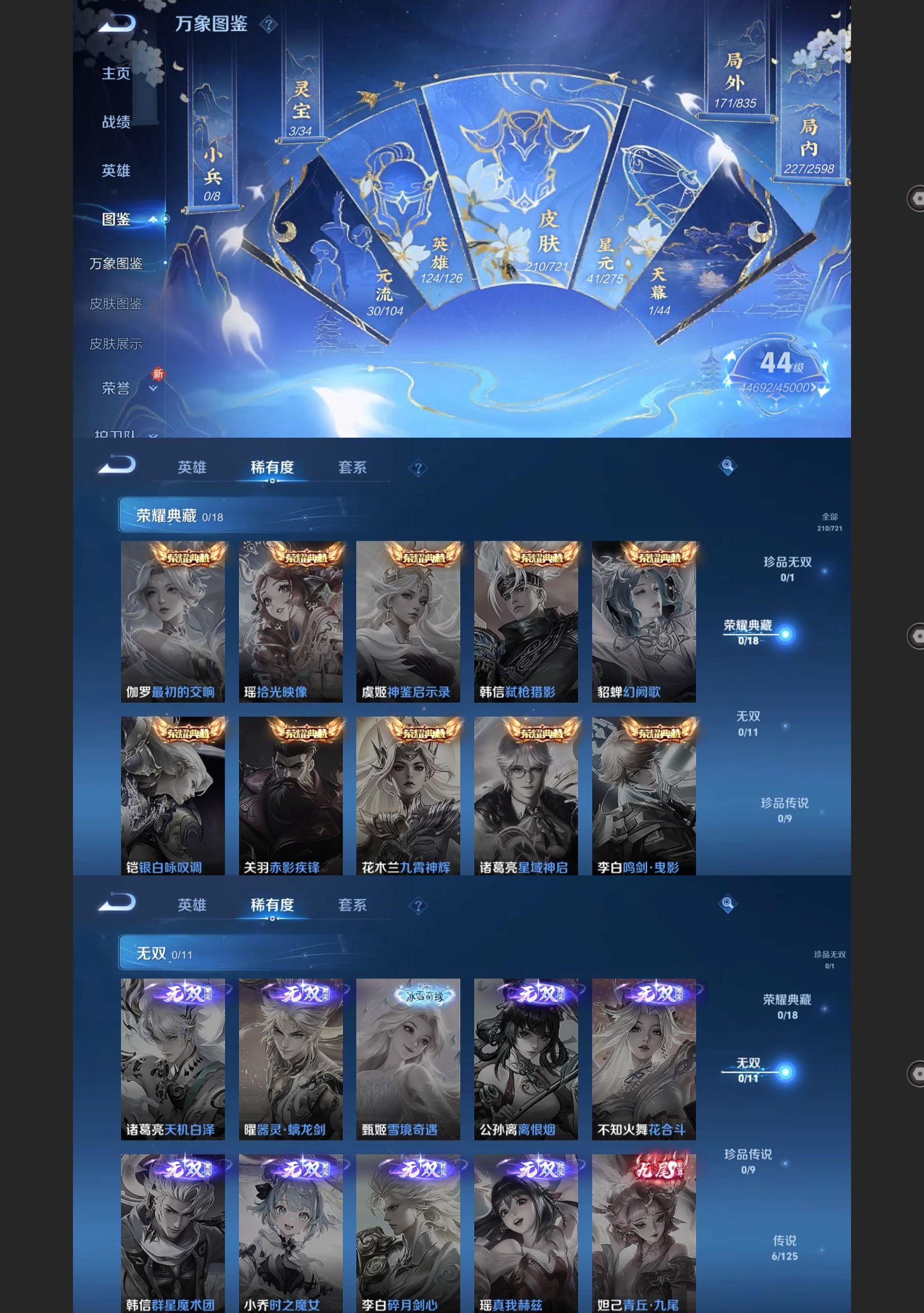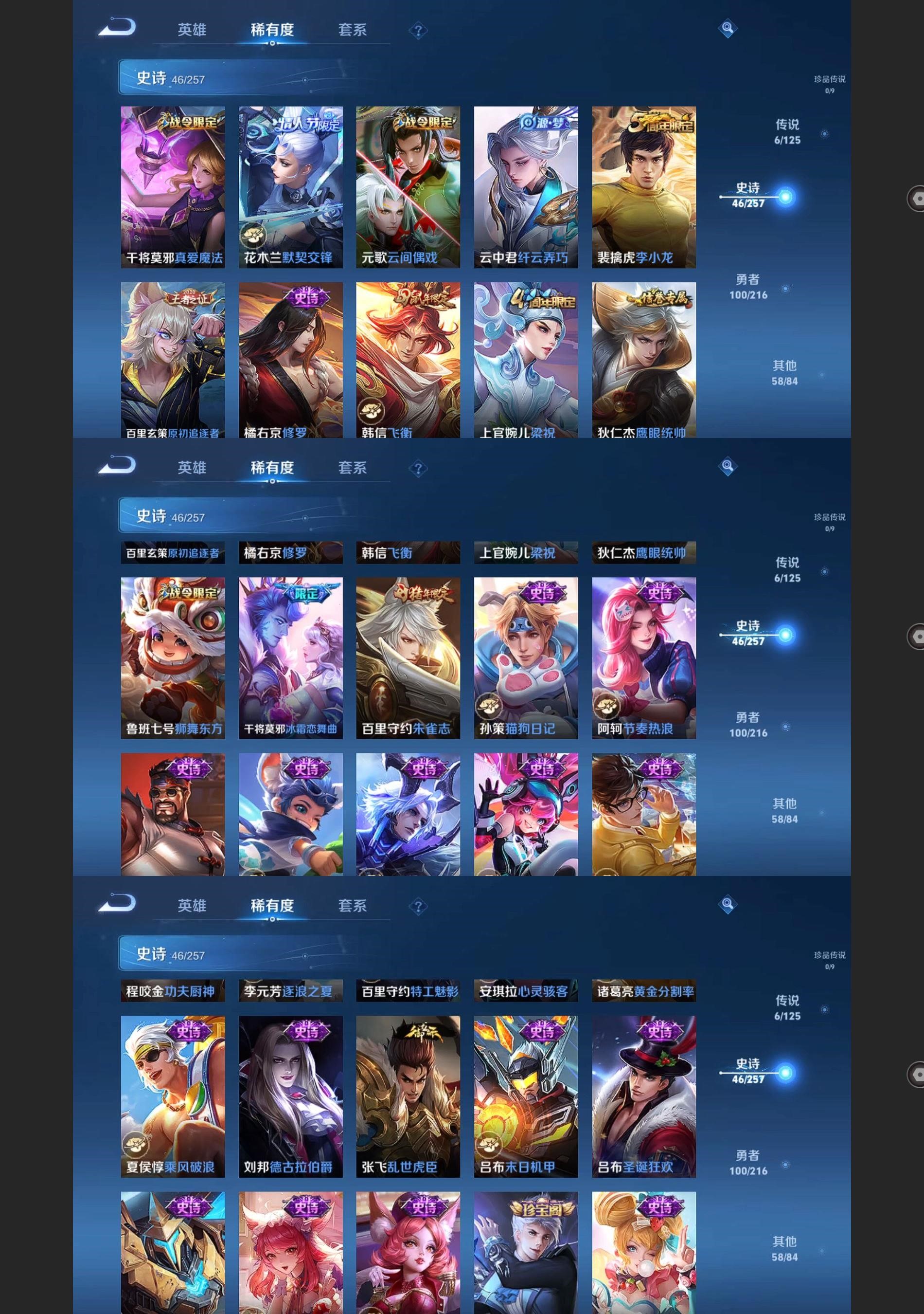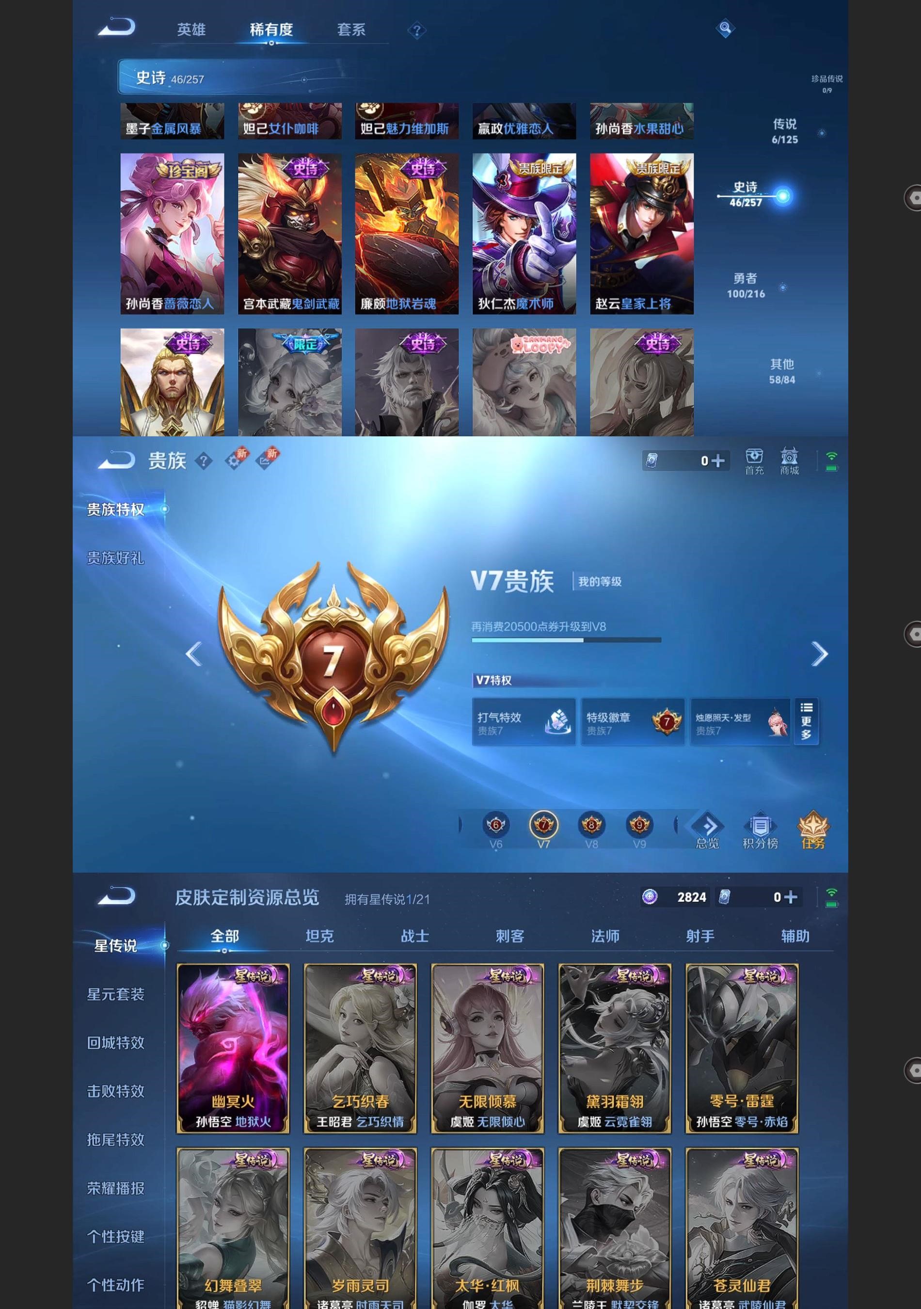 [王者荣耀]V76传说46史诗210皮肤尊贵铂金II