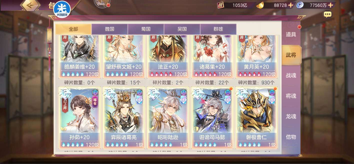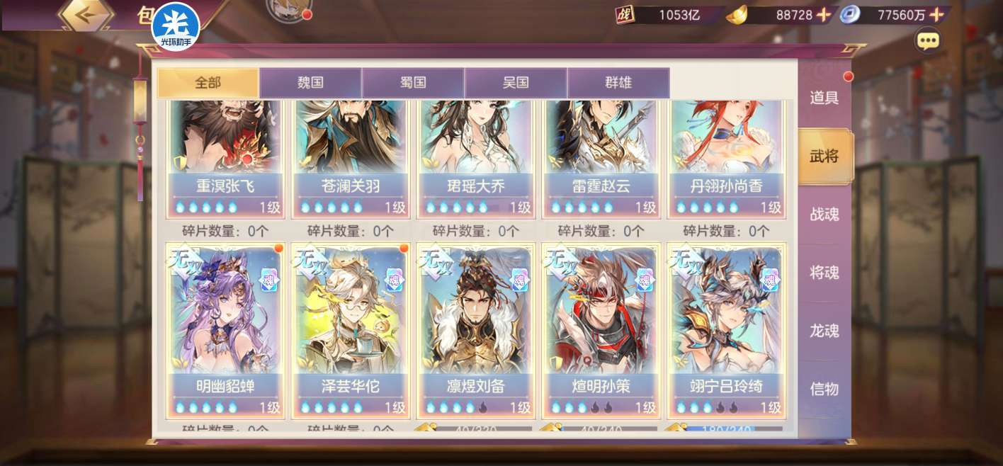 安卓联想 三国志幻想大陆,女团蜀国 背包资源多,下次巅峰赛可以16强