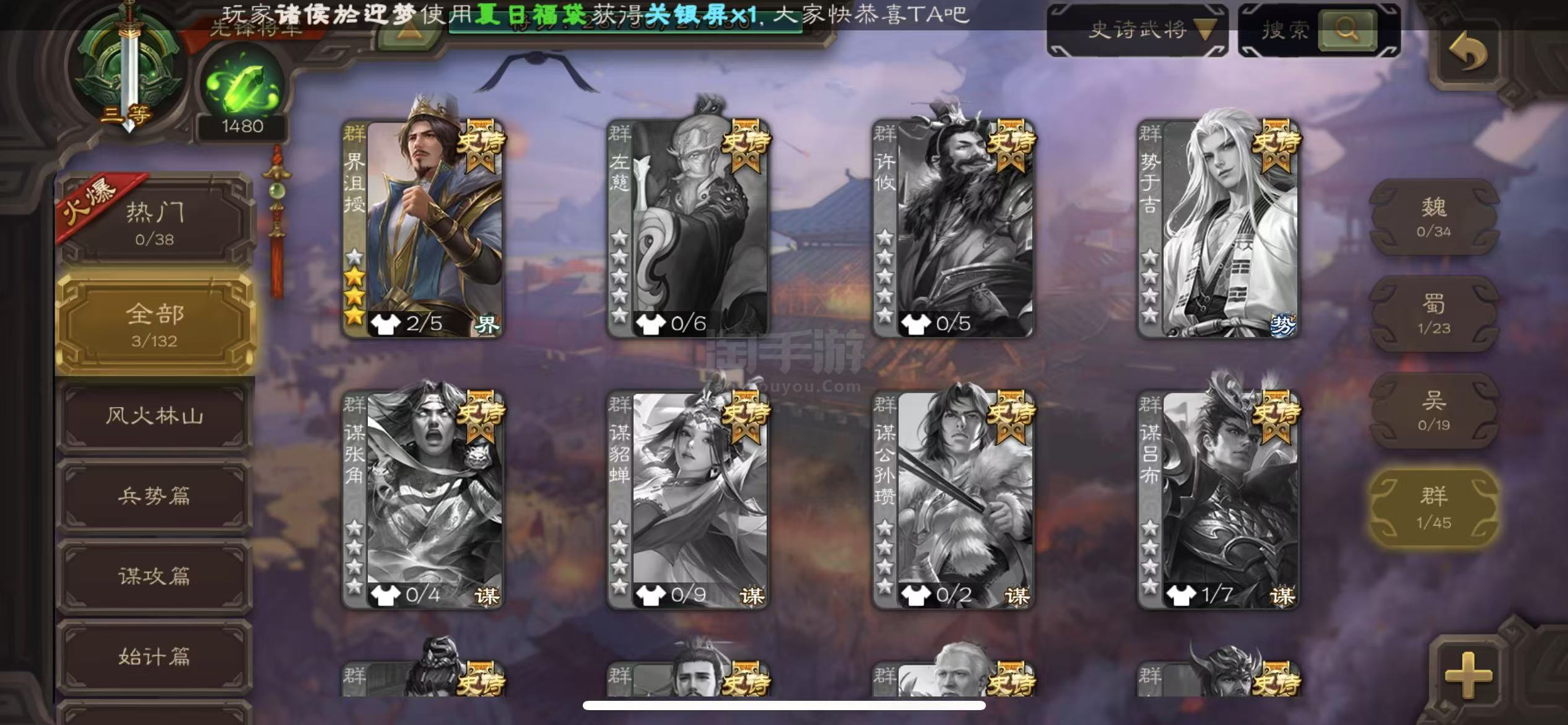 史诗武将数量: