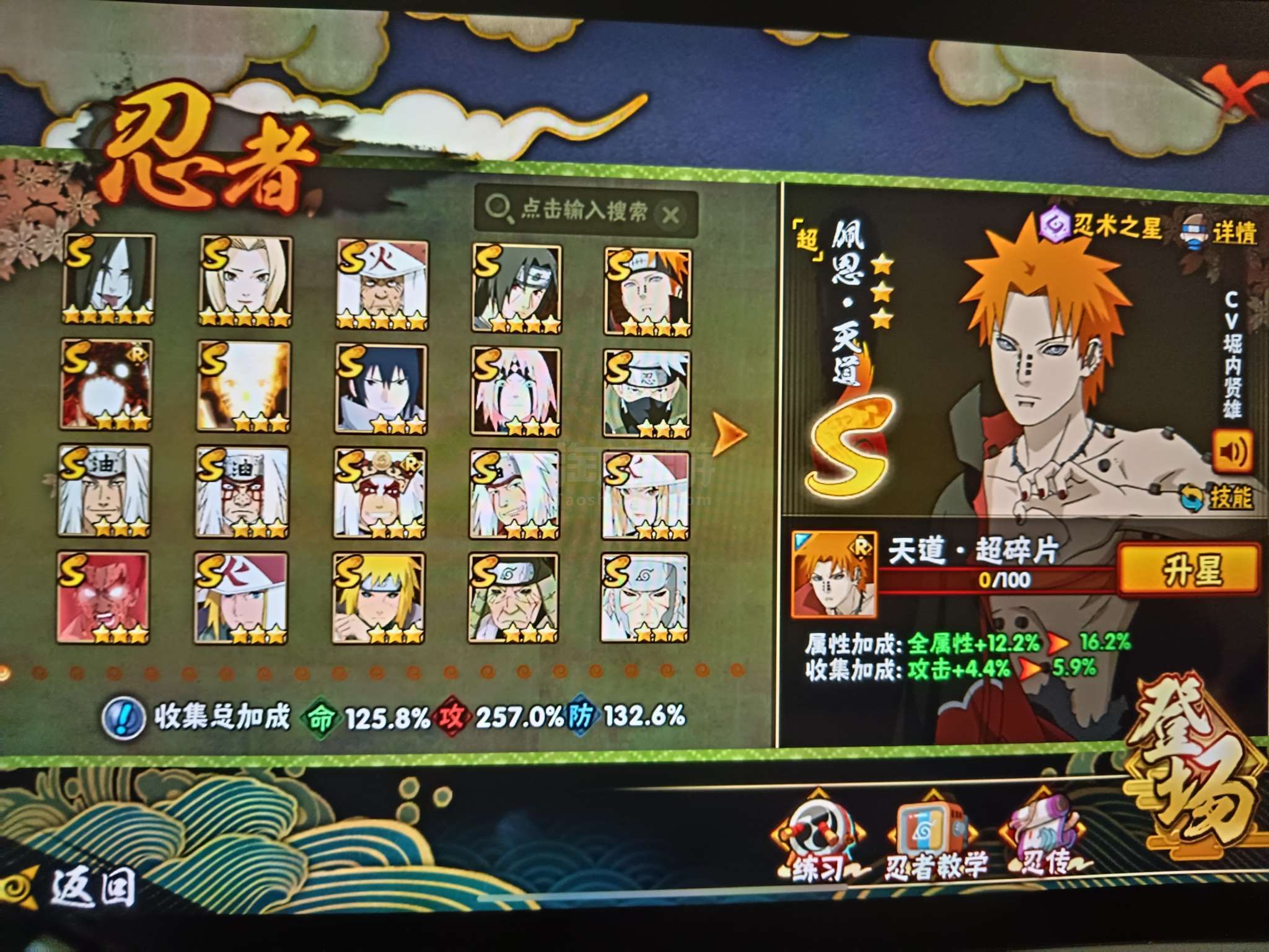 自来也(舞杰),自来也,自来也(仙人),大蛇丸,波风水门,佩恩(天道),宇智波鼬(须佐能乎),神秘面具男,千手扉间,艾(四代目),千手柱间,宇智波斑,长门(秽土),猿飞日斩(秽土),波风水门(秽土),纲手(百豪),千手扉间(秽土),宇智波斑(白面具),宇智波斑(秽土),药师兜(仙人),鬼灯幻月(二代目),金角银角(秽土),无(二代目),半藏(秽土),艾(三代目),佩恩天道(超),纲手,猿飞日斩,大野木(三代目),宇智波鼬(秽土),罗砂(四代目),千手柱间(秽土),忍界带土,木叶创立斑,三代目风影(秽土),八门凯,大野木(忍界大战),九喇嘛鸣人,大筒木金氏,忍战樱,神秘面具男 (红叶之刃),宇智波佐助(永恒万花筒),木叶创立( 柱间 ),秽土解斑,大筒木桃式(博人传),艾(忍界大战),止水(须佐能乎),旗木卡卡西(须佐能乎),大筒木舍人(最终章),自来也(传说中的三忍),漩涡鸣人(暴怒·第六尾)
