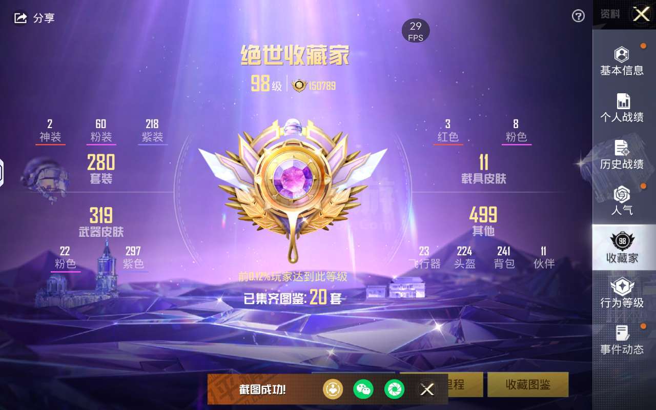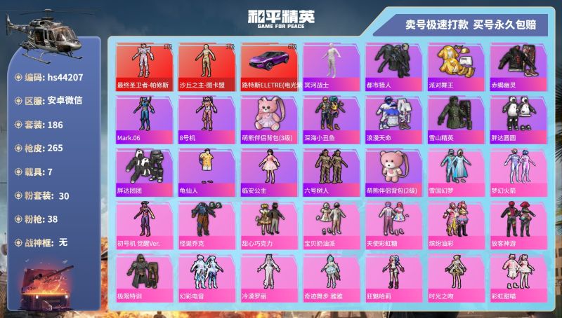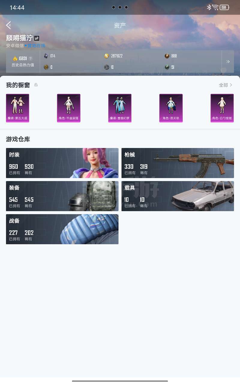 和平精英【安卓微信】2红装 3红车 60粉装 22粉枪 退游,16.8万热力值60粉装